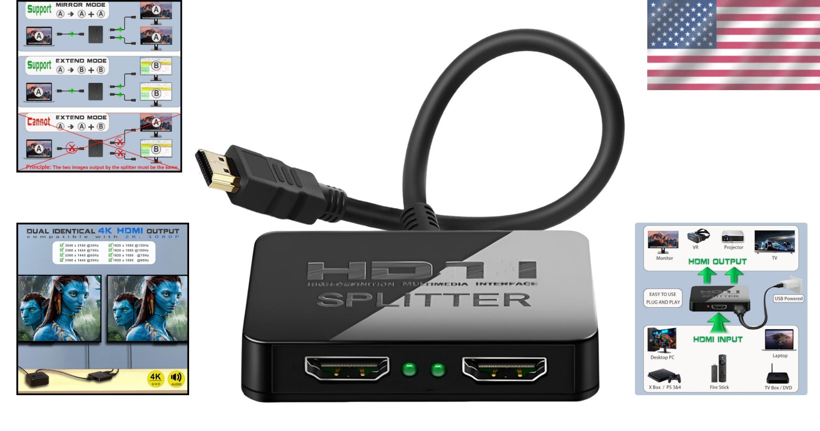 как выглядит 4K HDMI Splitter 1 in 2 Out for Dual Monitors - Hassle-Free Setup фото