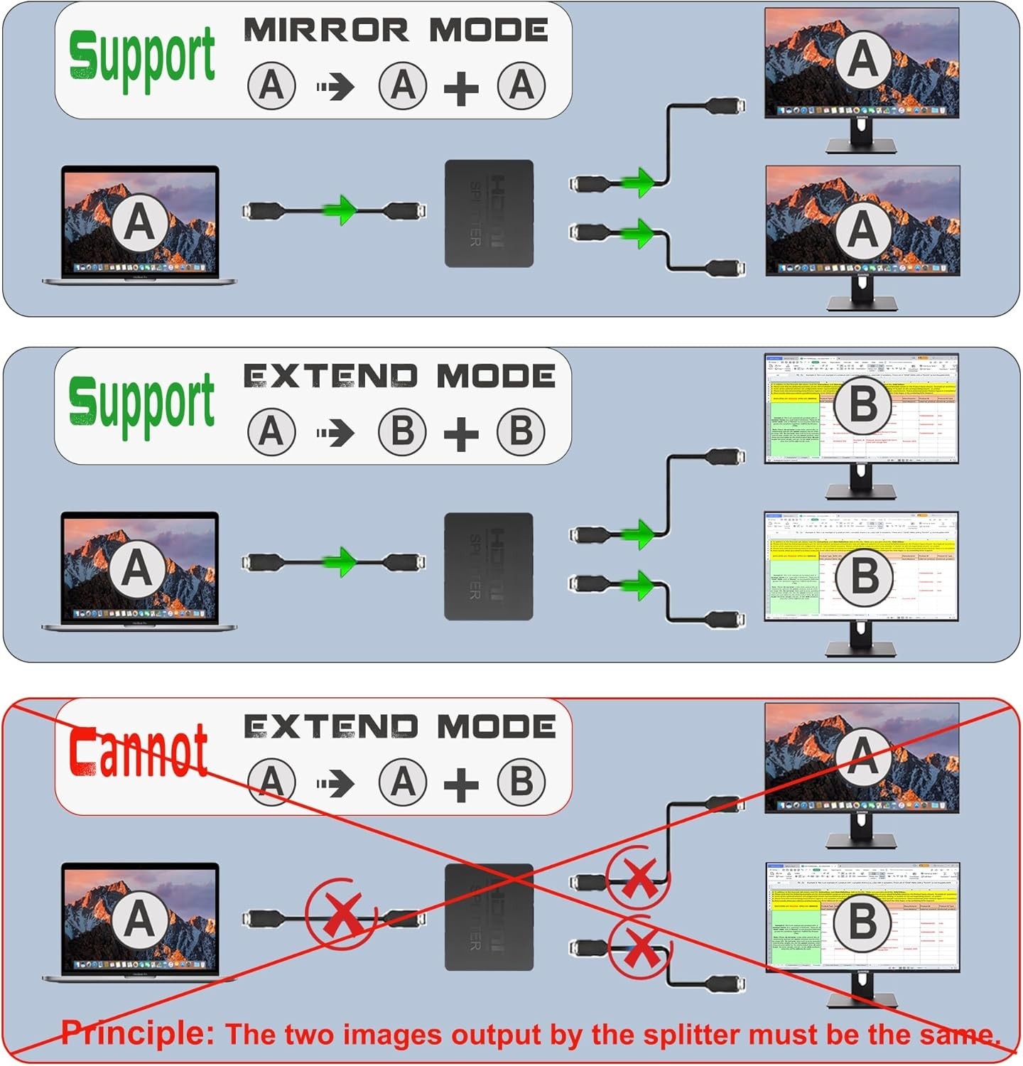4K HDMI Splitter 1 in 2 Out for Dual Monitors - Hassle-Free Setup