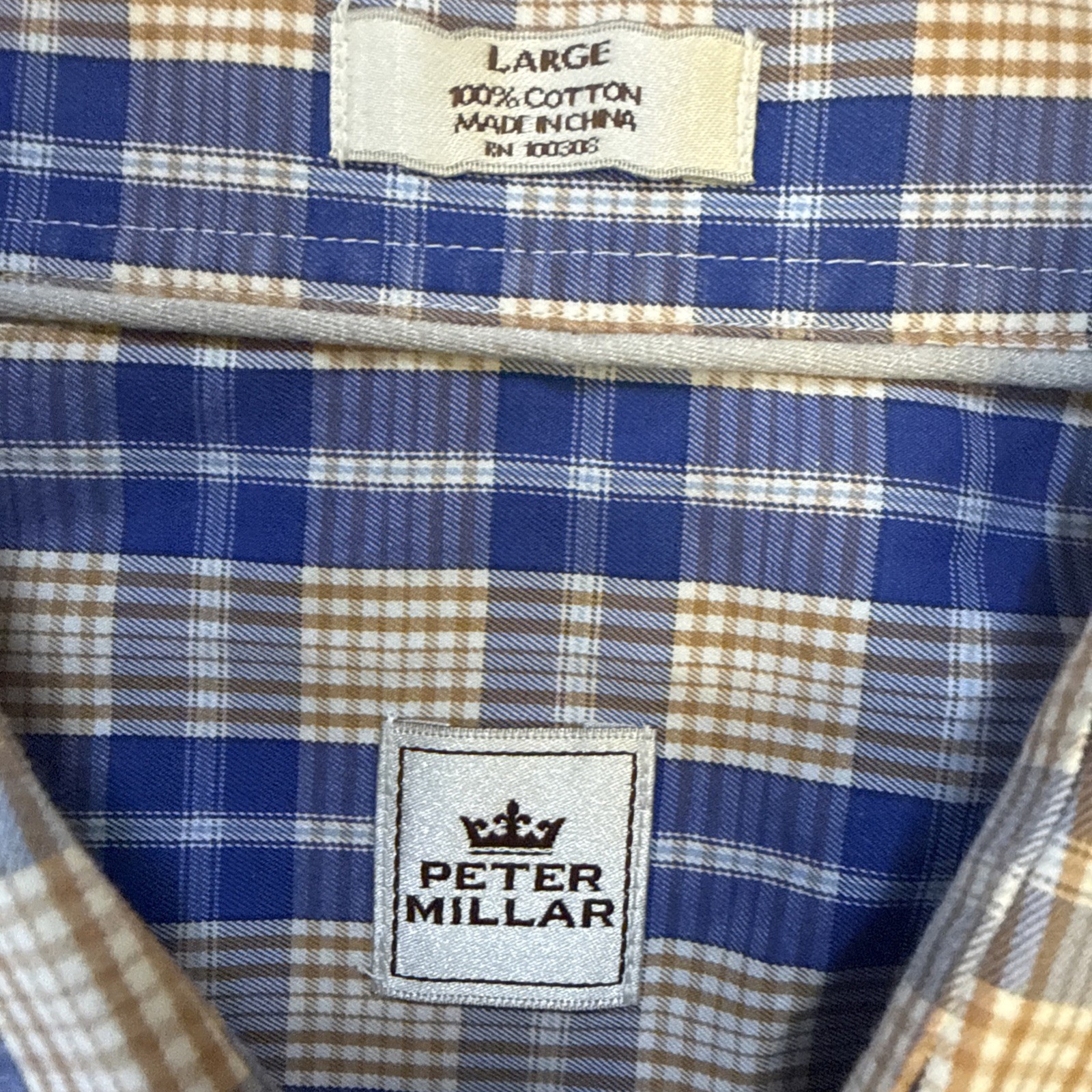 как выглядит Peter Millar Mens Large Button Down Shirt Plaid Checkered Long Sleeve фото
