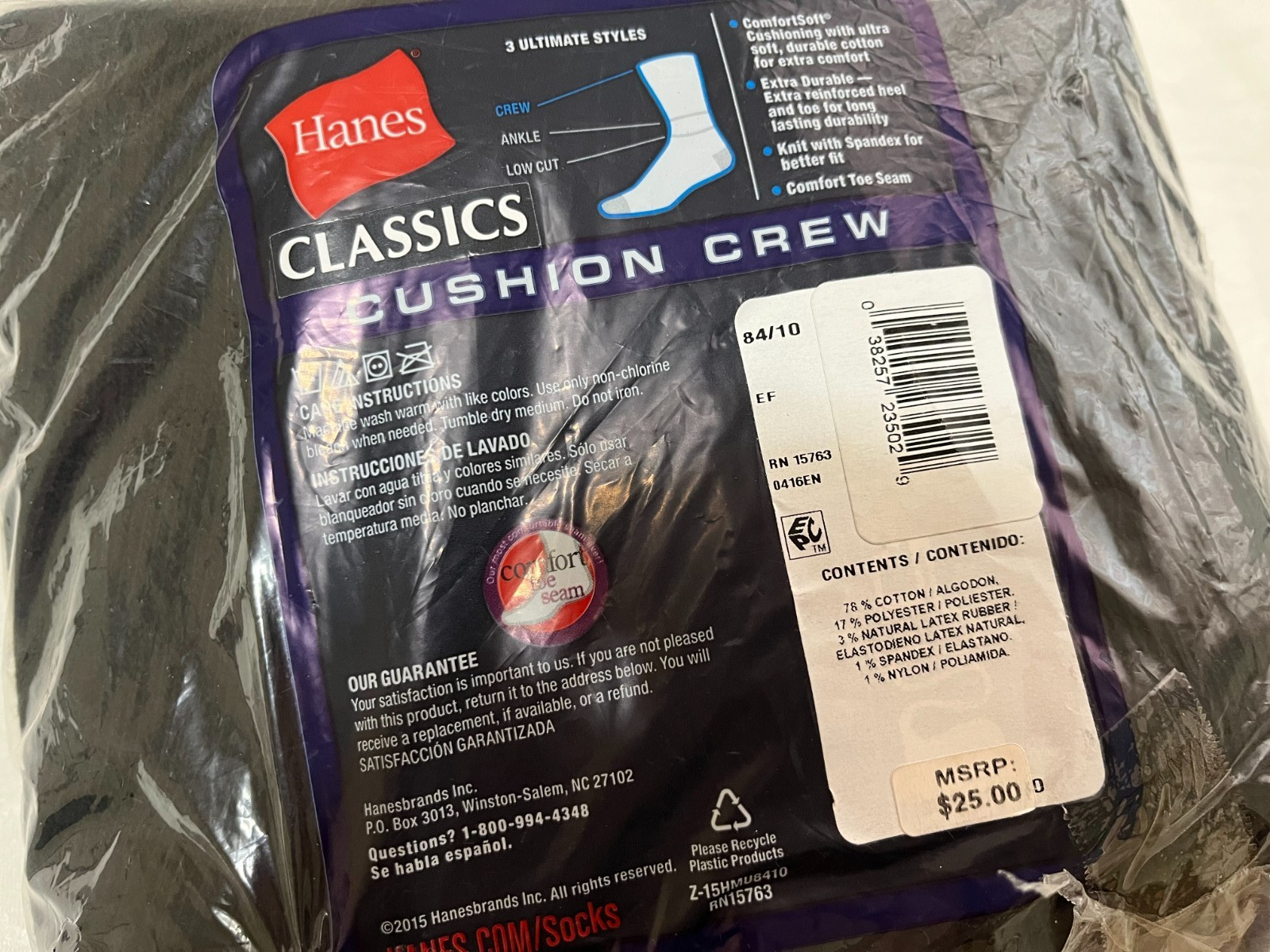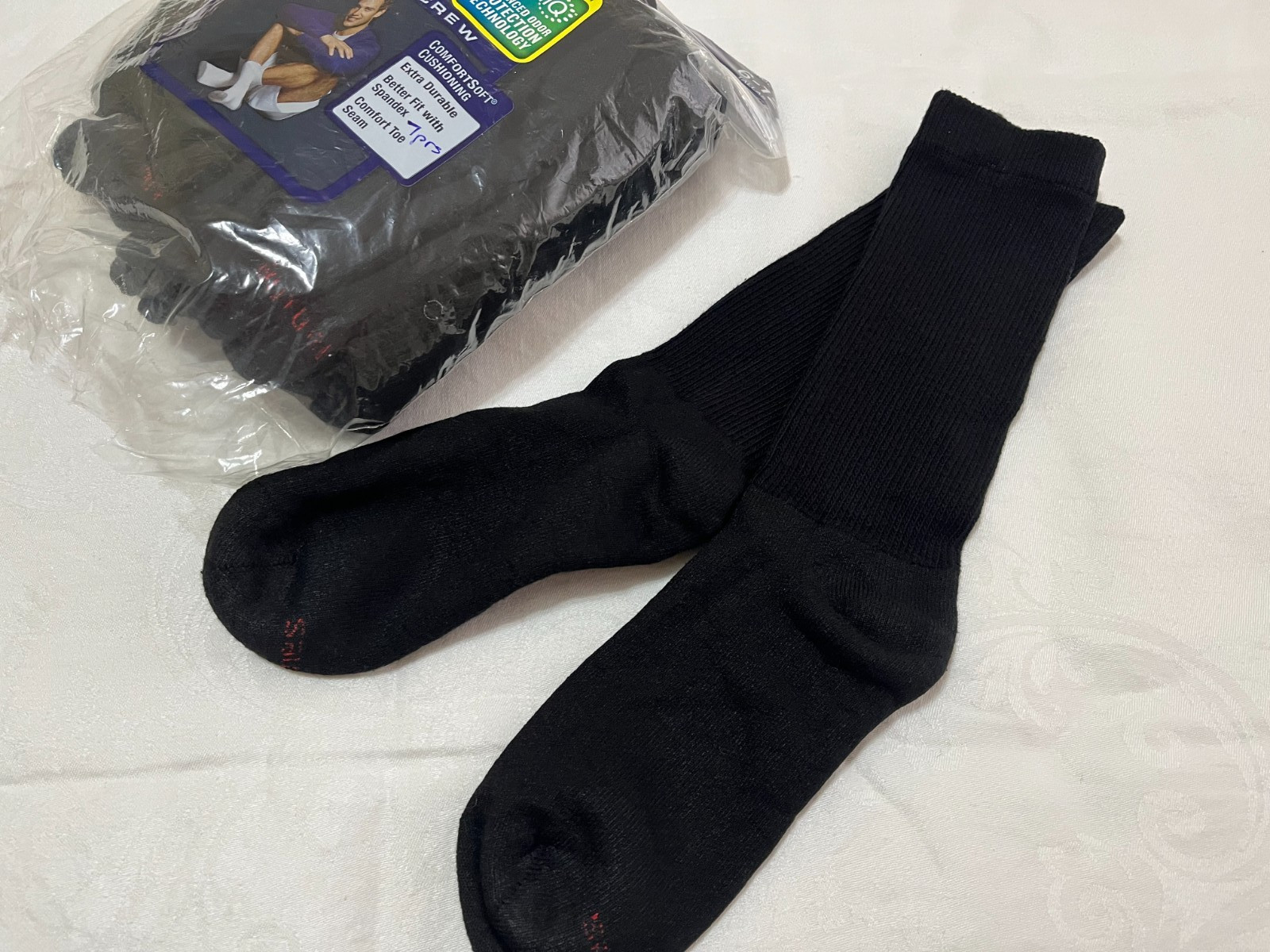 как выглядит Hanes Mens 7 Pair Pack Black Crew Socks Comfort Soft Xtra Durable Cushion NEW фото