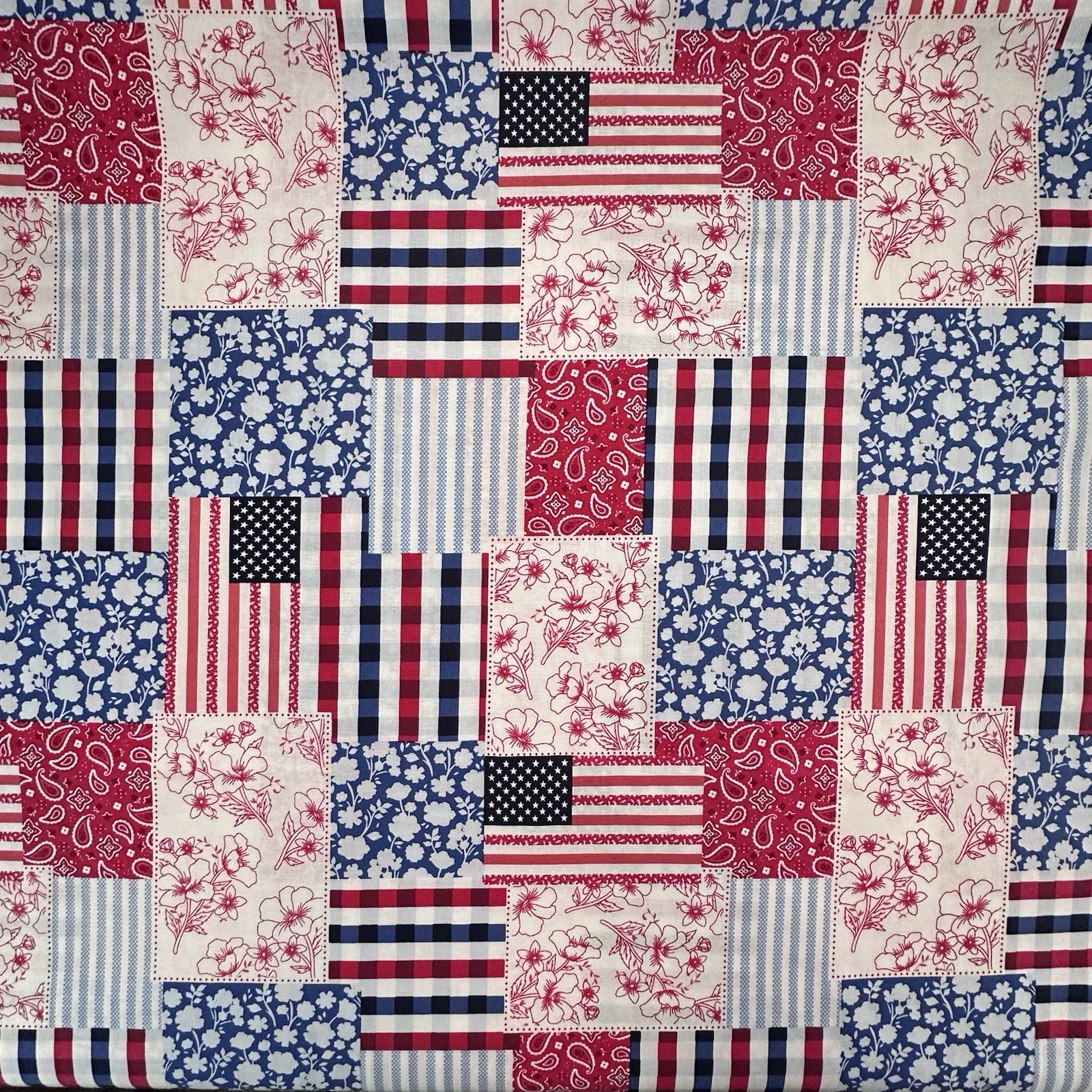 America's 250th Patriotic Fabric Red White Blue Stars, Stripes, XL Scrap Fat 8th