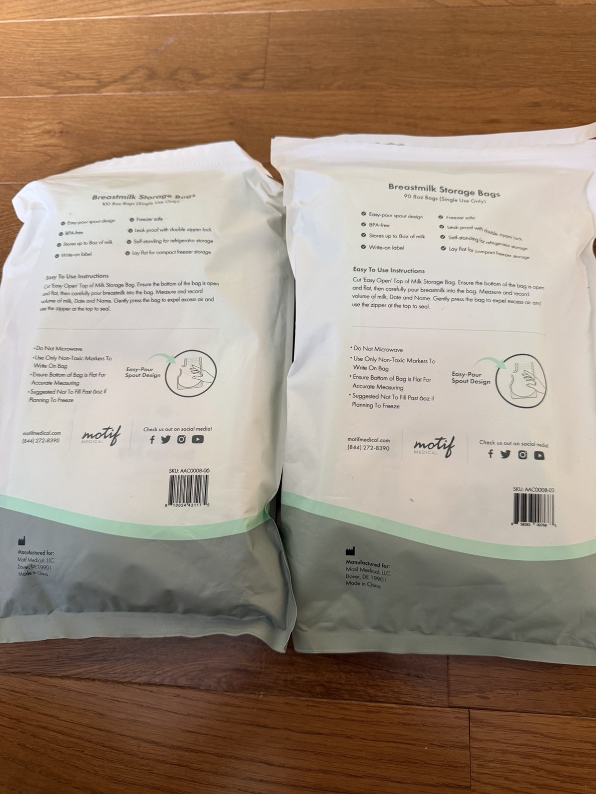 2 Motif Medical Breast Milk Storage Bags 8oz single use