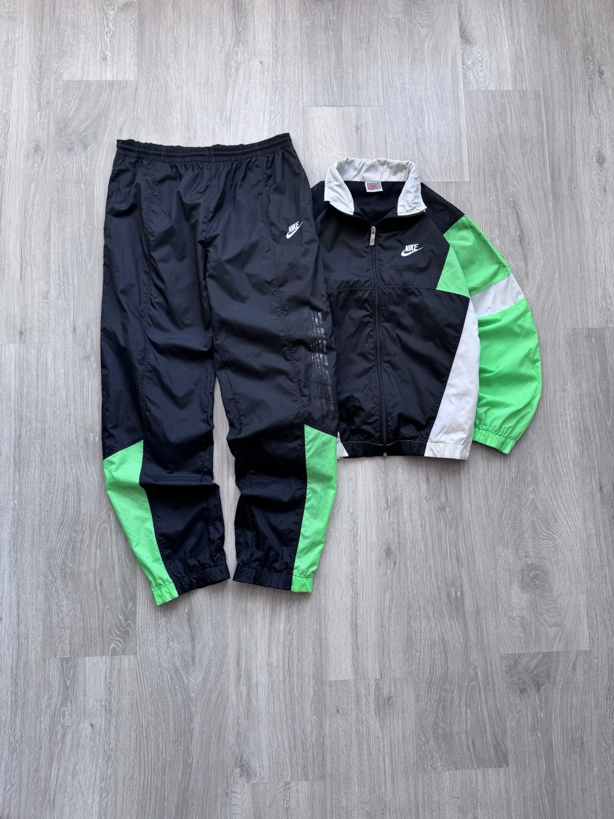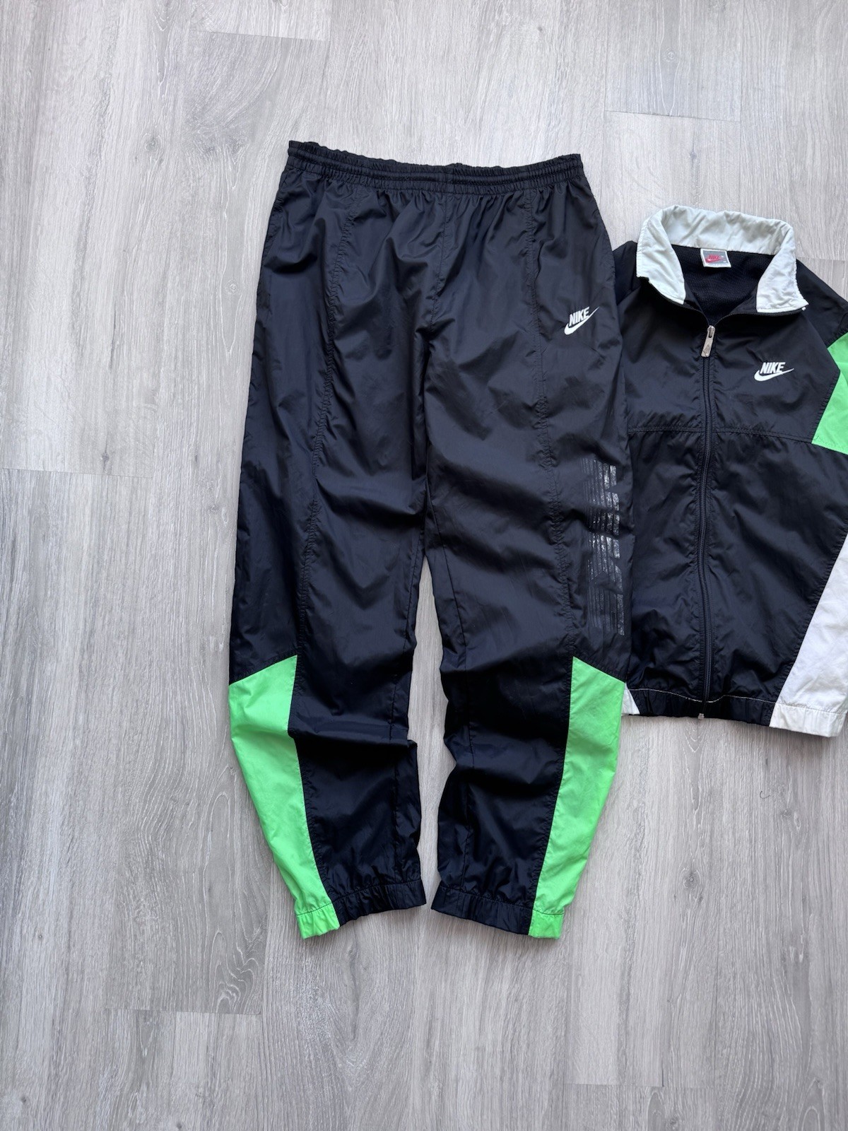 Vintage Nike 80s Nylon Black TrackSuit Set Pants Jacket Mini Swoosh Logo M Size