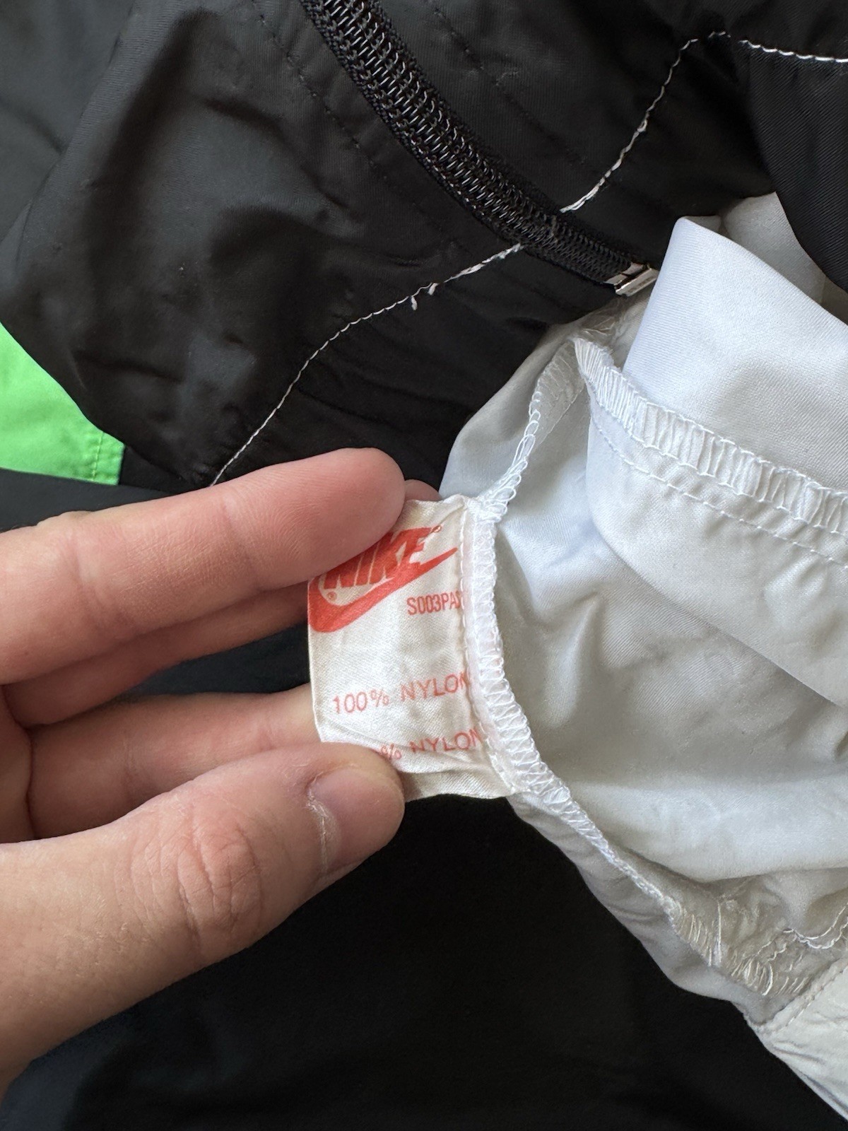 как выглядит Vintage Nike 80s Nylon Black TrackSuit Set Pants Jacket Mini Swoosh Logo M Size фото