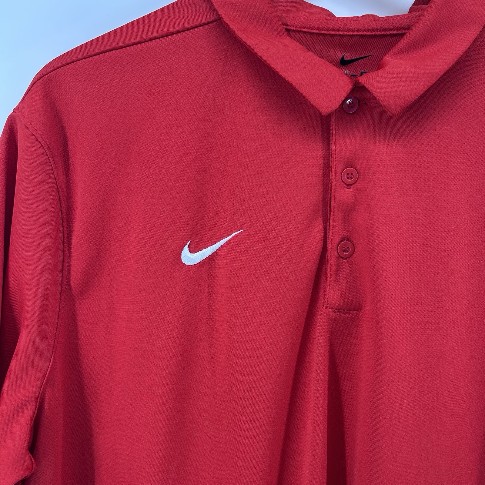 Nike Dri Fit Polo Shirt Mens XL Red Golf Athletic White Swoosh Wicking