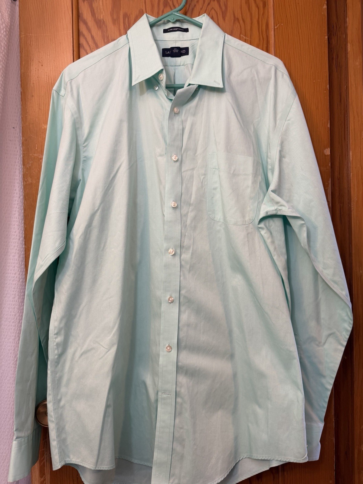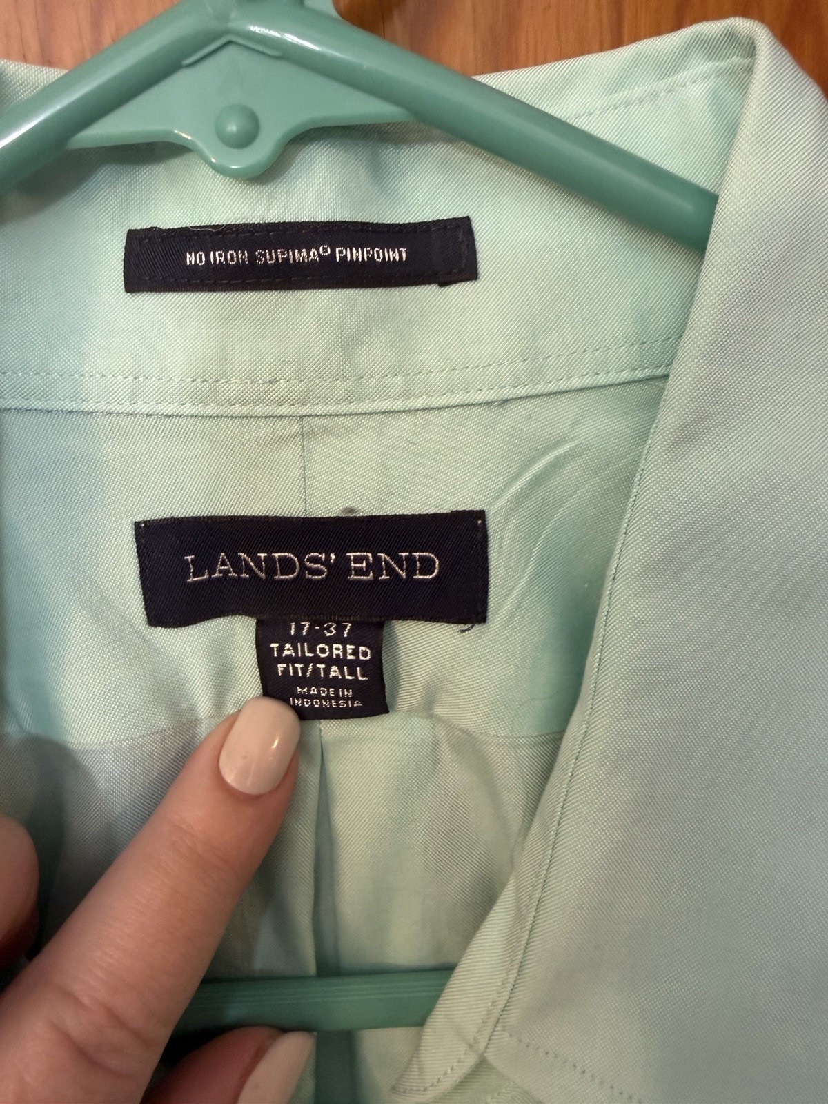как выглядит Lands End No Iron Supine Pinpoint Dress Shirt Tailored Fit Tall 17-37 Mint Green фото