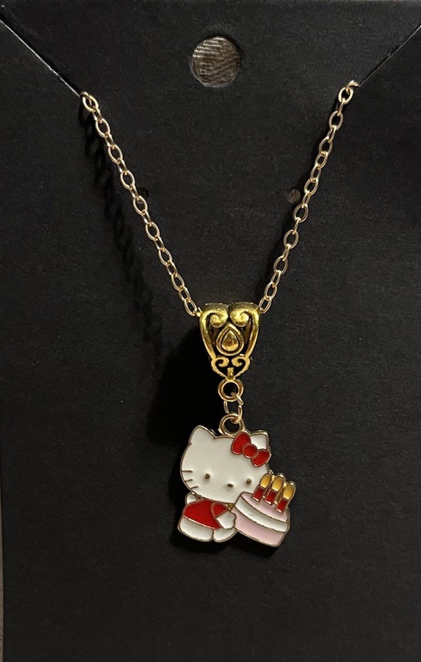 Hello Kitty Birthday Whimsical Charm Cartoon Adorable Pendant Gold Necklace 18