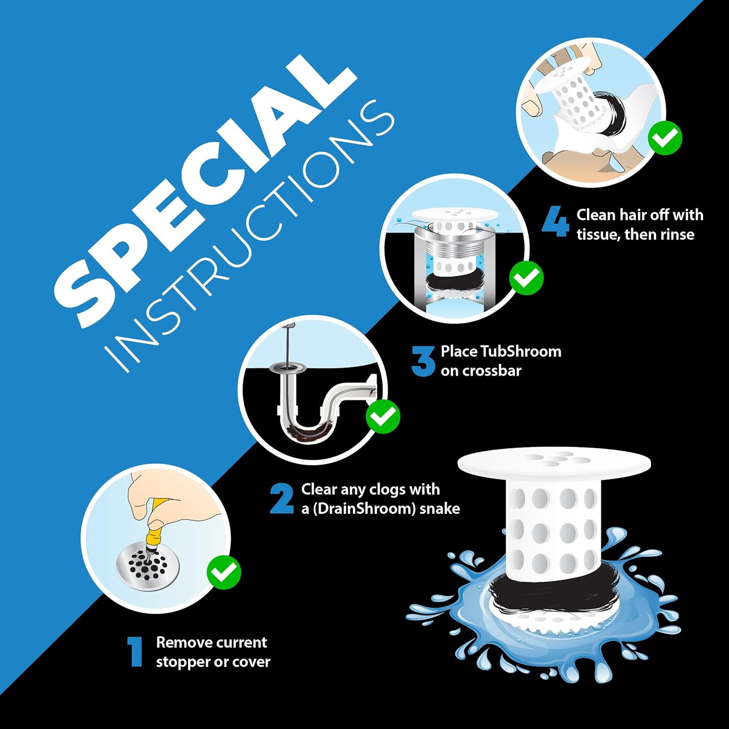 Tubshroom Bathtub Drain Hair Catcher In-Drain Tub Strainer Clog Prevention P