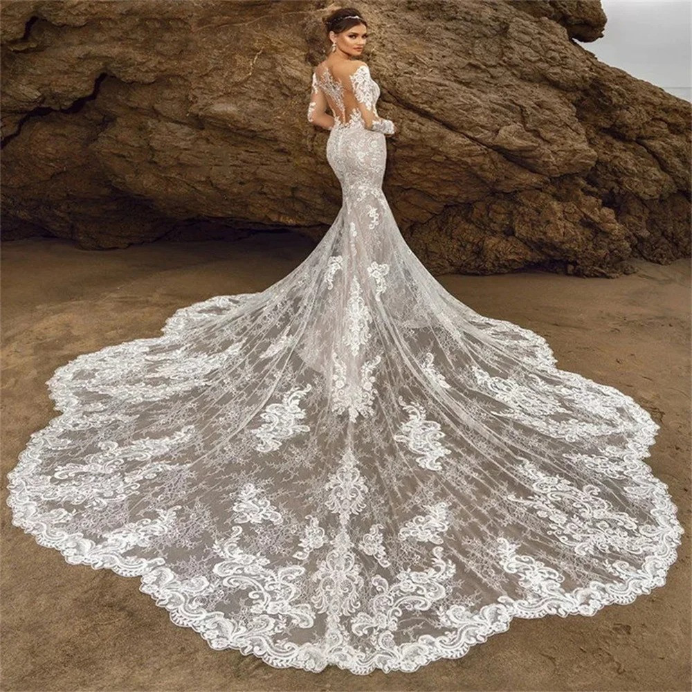 Mermaid Wedding Dresses Bridal Gowns Classic Long Sleeves Floor-Length Dresses