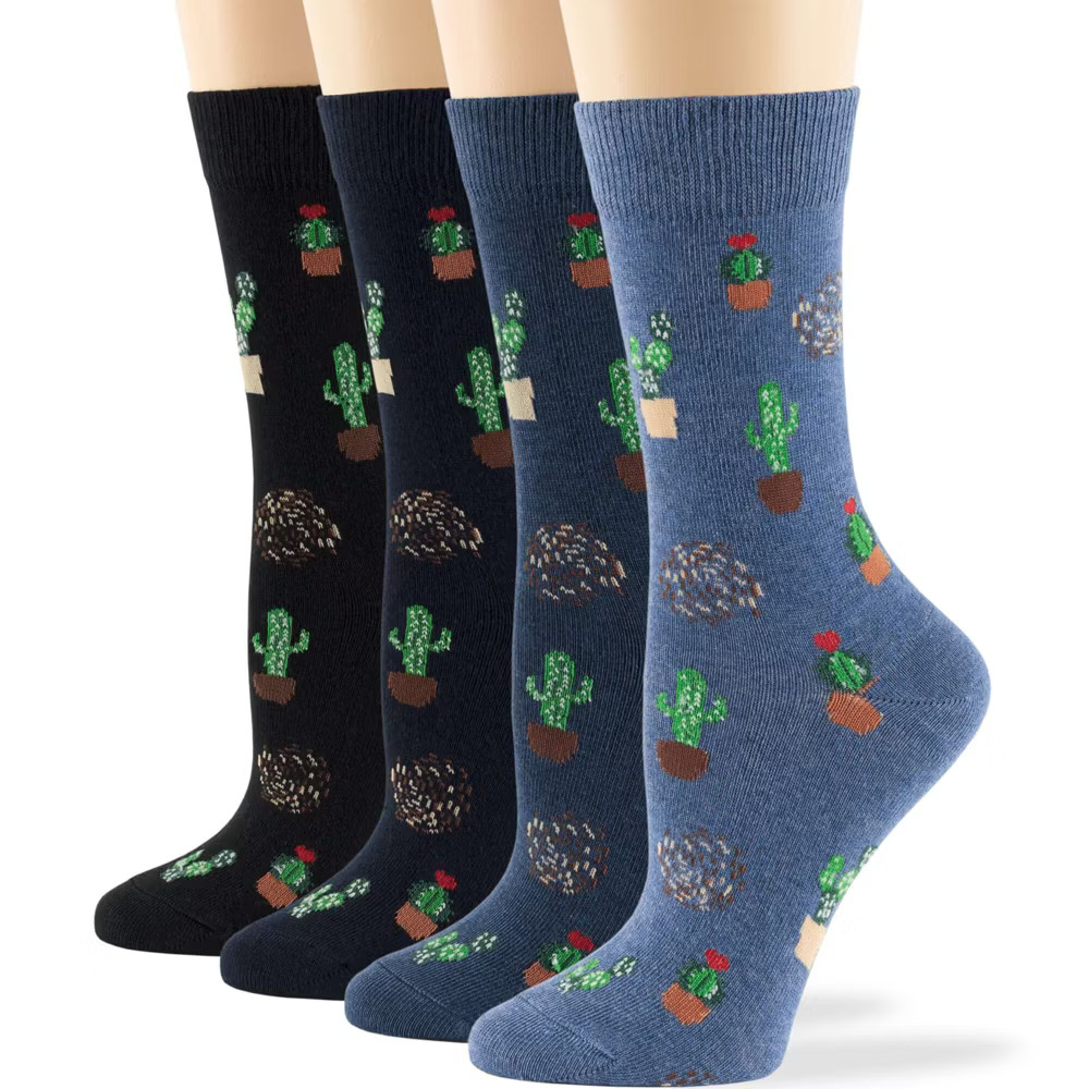 Women Cotton Fun Crew Socks - 4 Pack Large - Cat Paw
