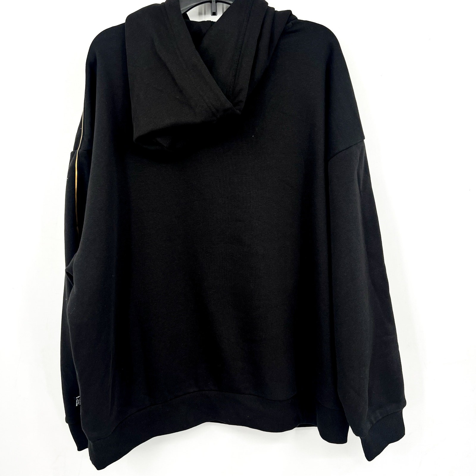 как выглядит PUMA Womens Essentials Tape Minimal Gold Hoodie Large Black Sweatshirt NWT фото