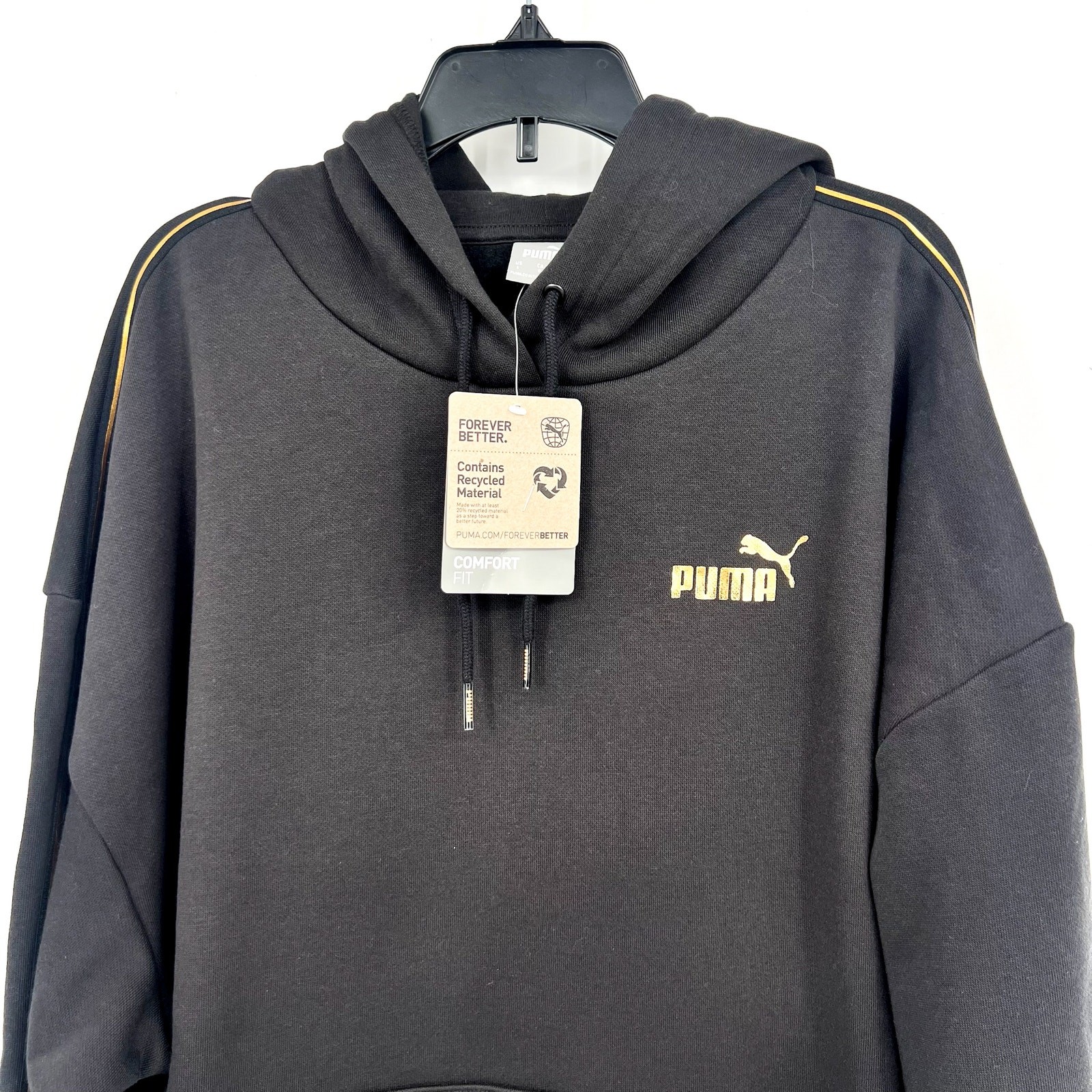 PUMA Women's Essentials Tape Minimal Gold Hoodie Large Black Sweatshirt NWT
