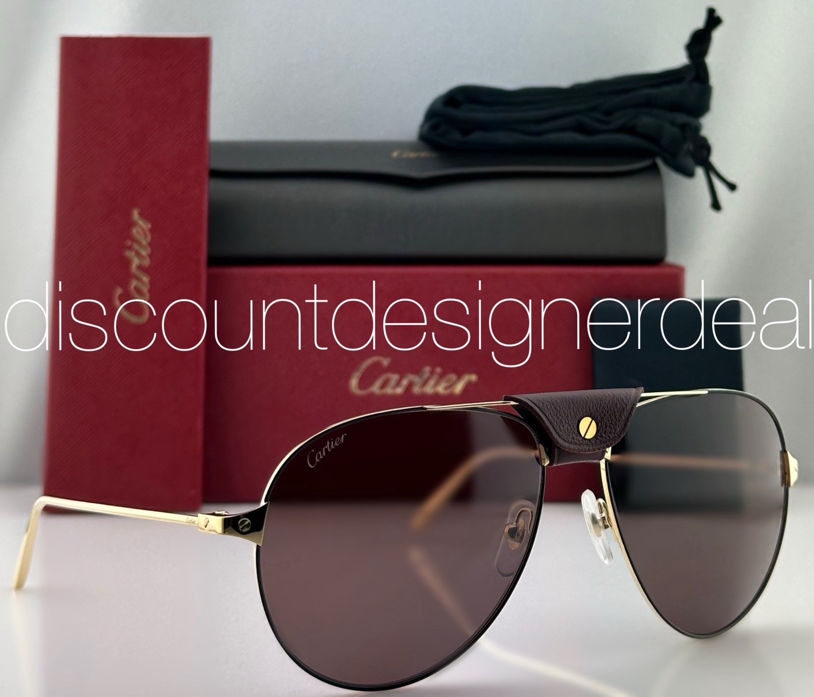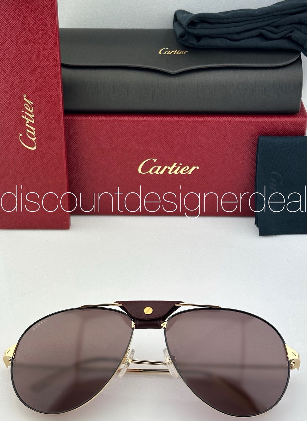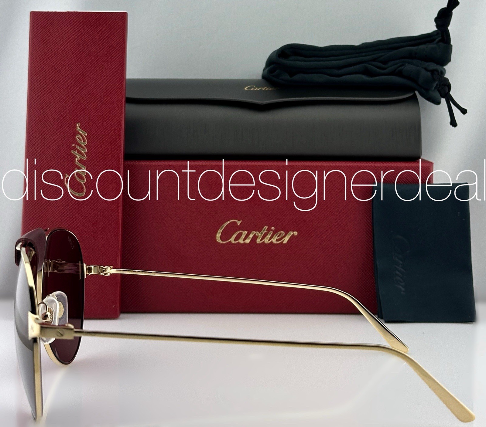 Cartier Sunglasses Men Gold Metal Burgundy Lens Aviator 61mm CT0038S 011 NEW