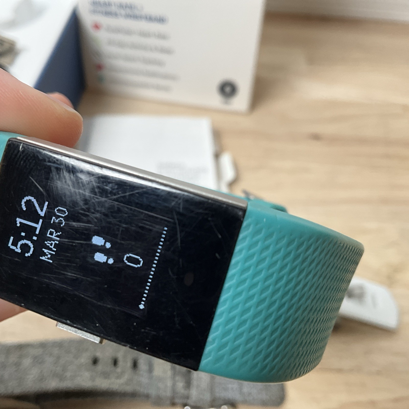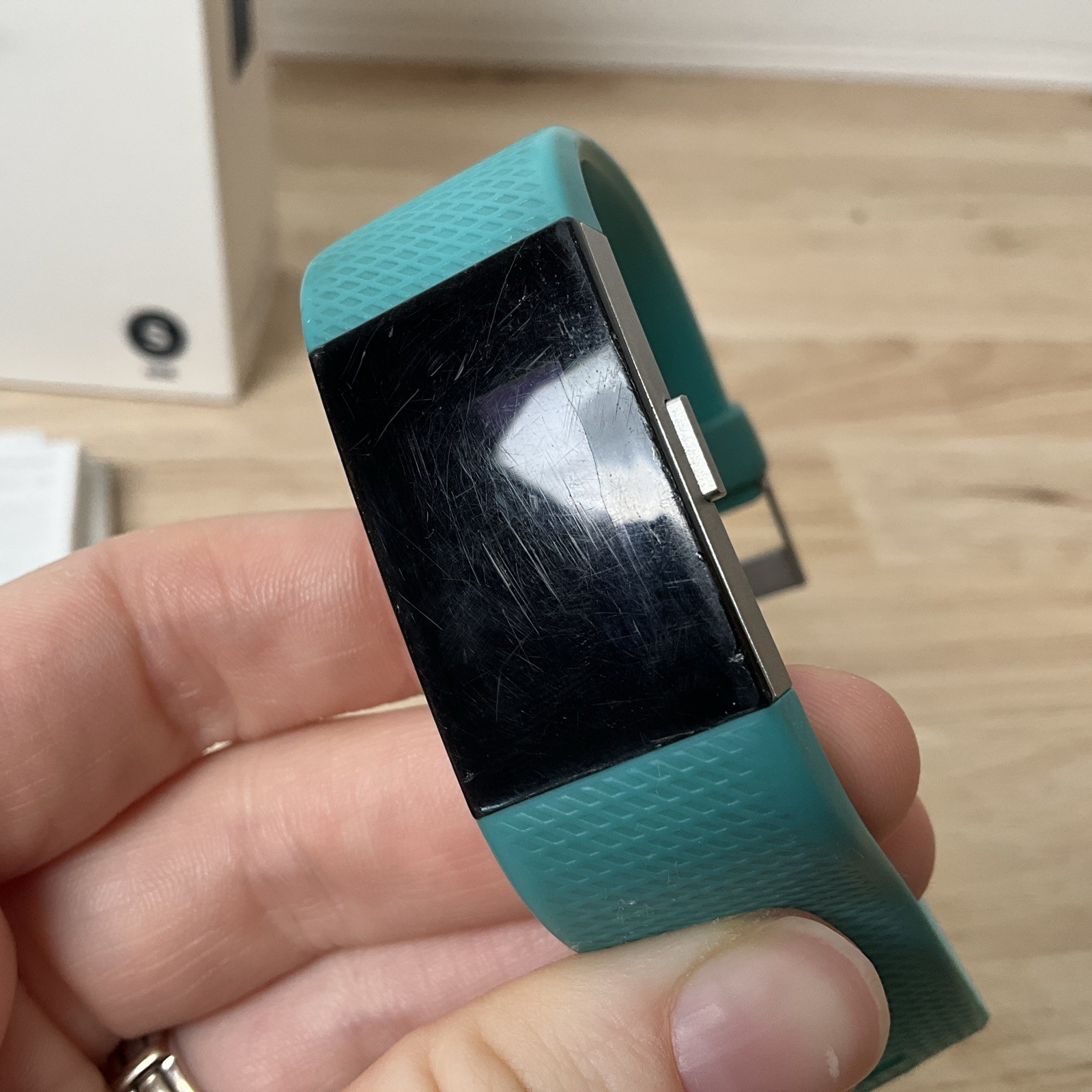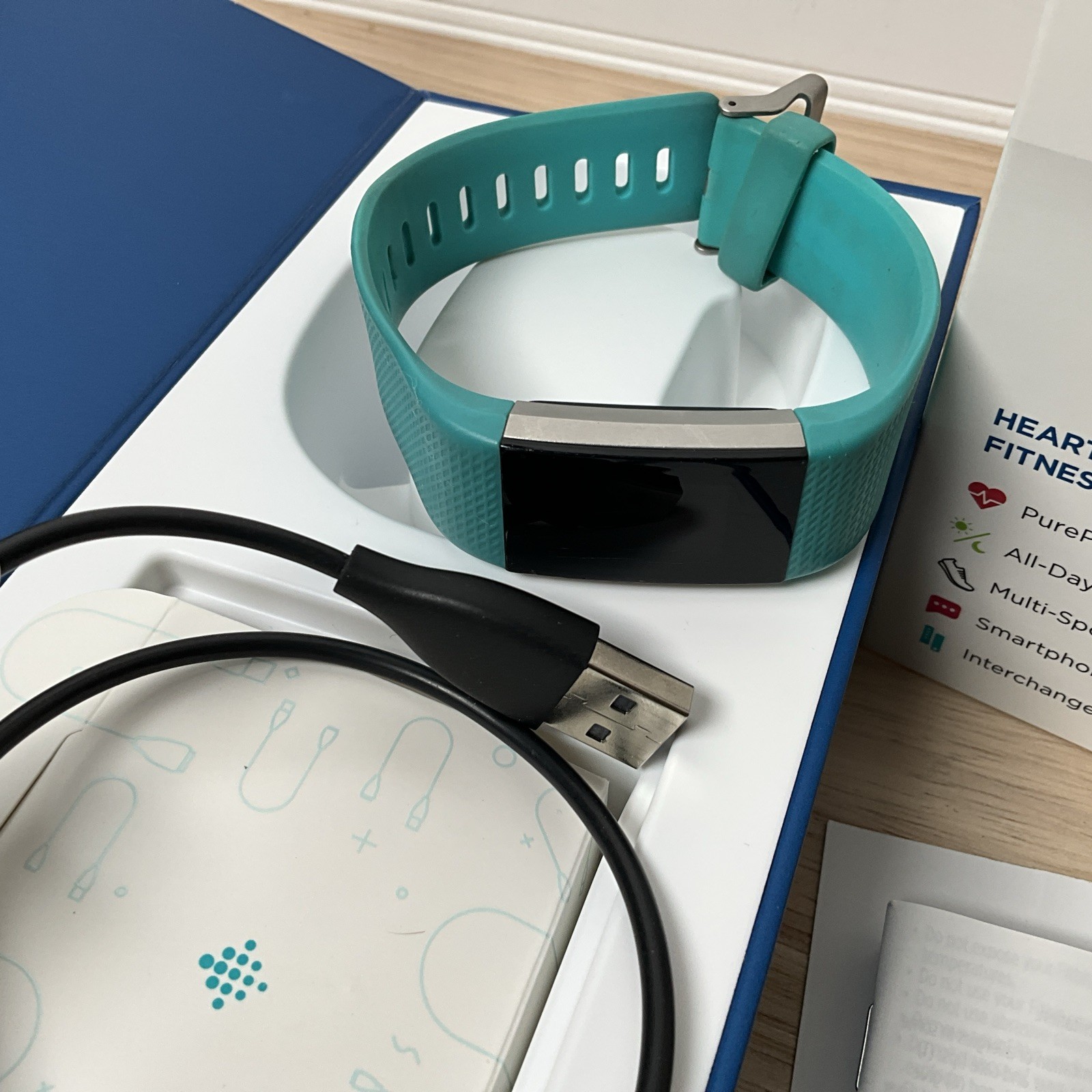 как выглядит Fitbit Charge 2 Heart Rate Fitness Blue Wristband Small FB407 w/ Charger TESTED фото