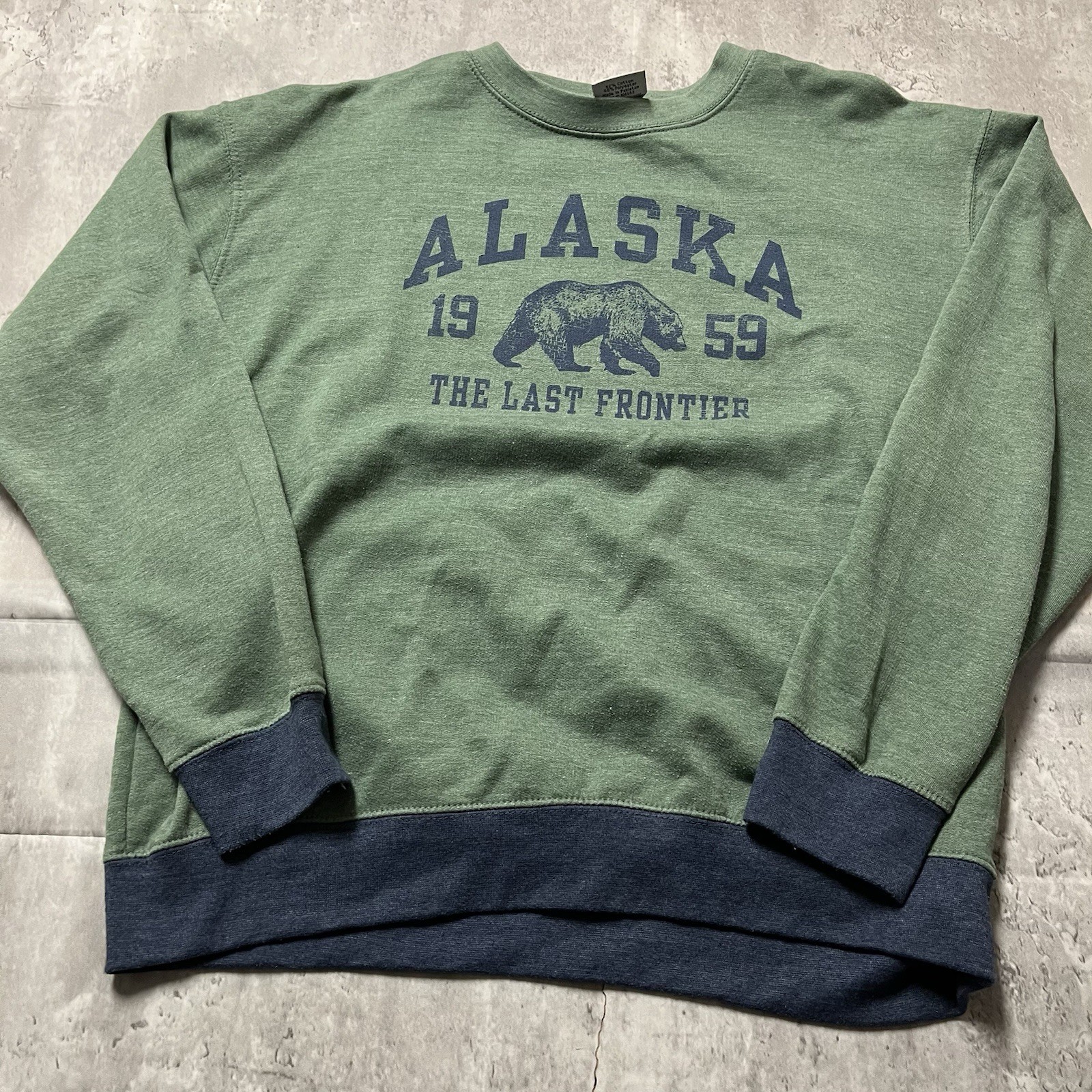 как выглядит Prairie Mountain Alaska The Last Frontier Embroidered Green Sweatshirt Men Large фото