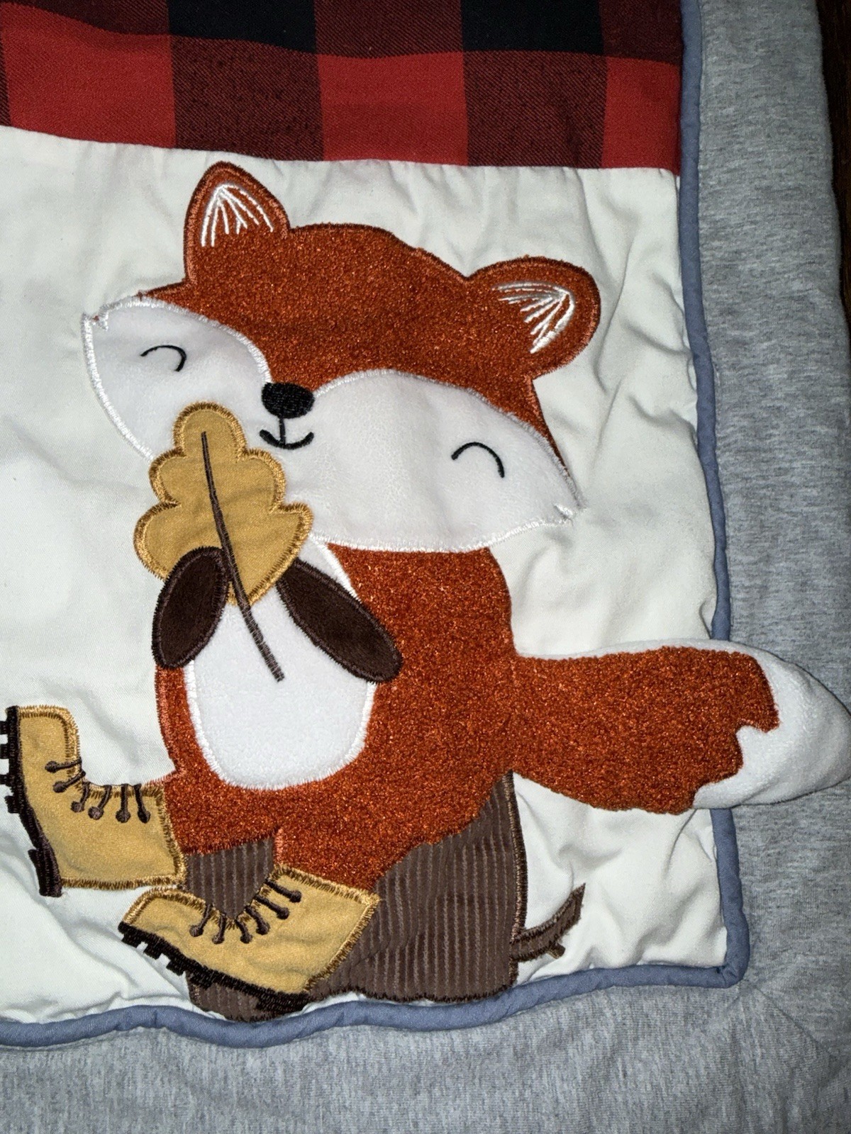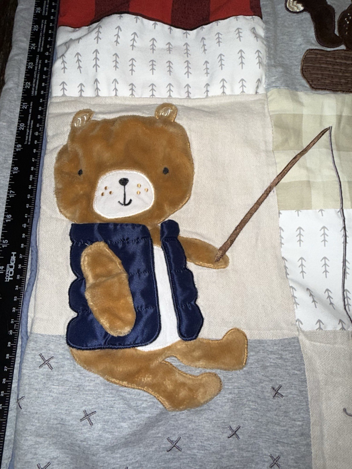 как выглядит Lambs Ivy Baby Blanket Crib Quilt Little Campers Woodland Animals 35x43 фото