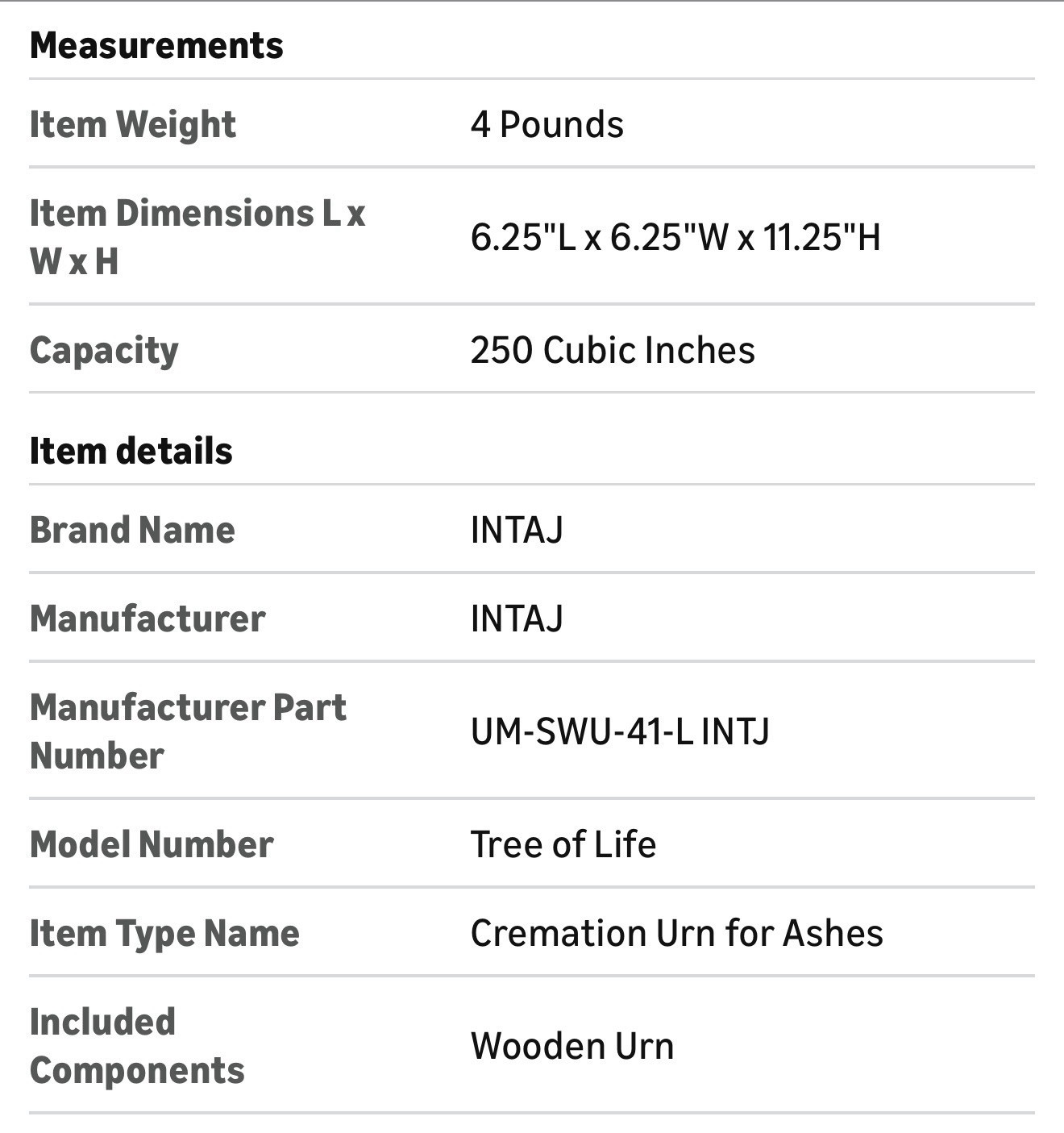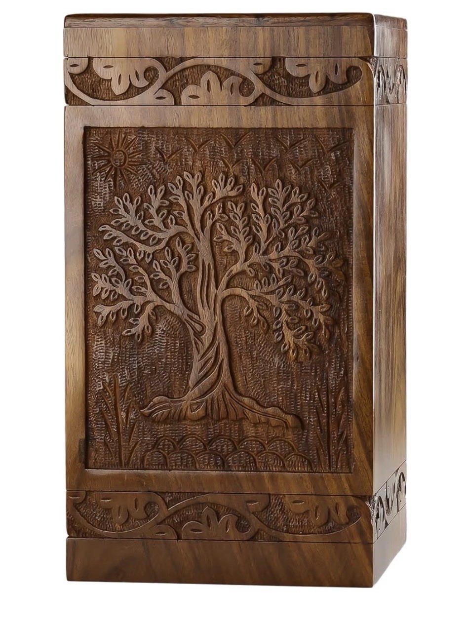 • INTAJ Handcarved Wooden Cremation Urn for Human Ashes, Tree of Life, 250 lbs