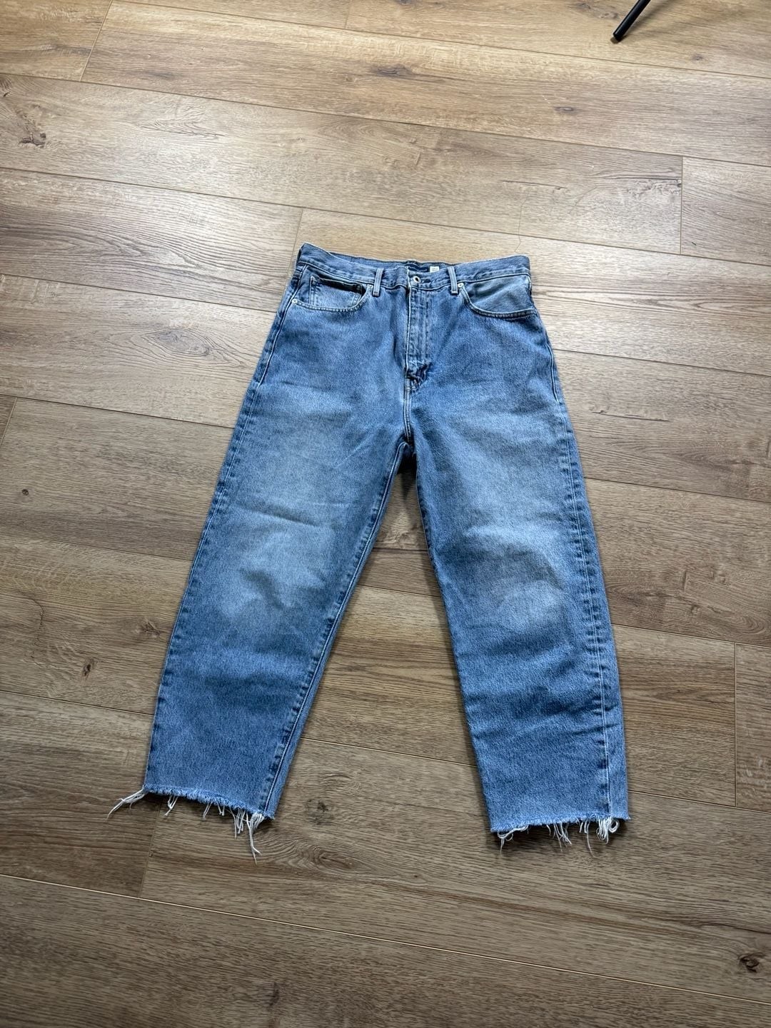 как выглядит Levi s Made Crafted Barrel Crop Jeans Light Wash Raw Hem Size 29 Women фото