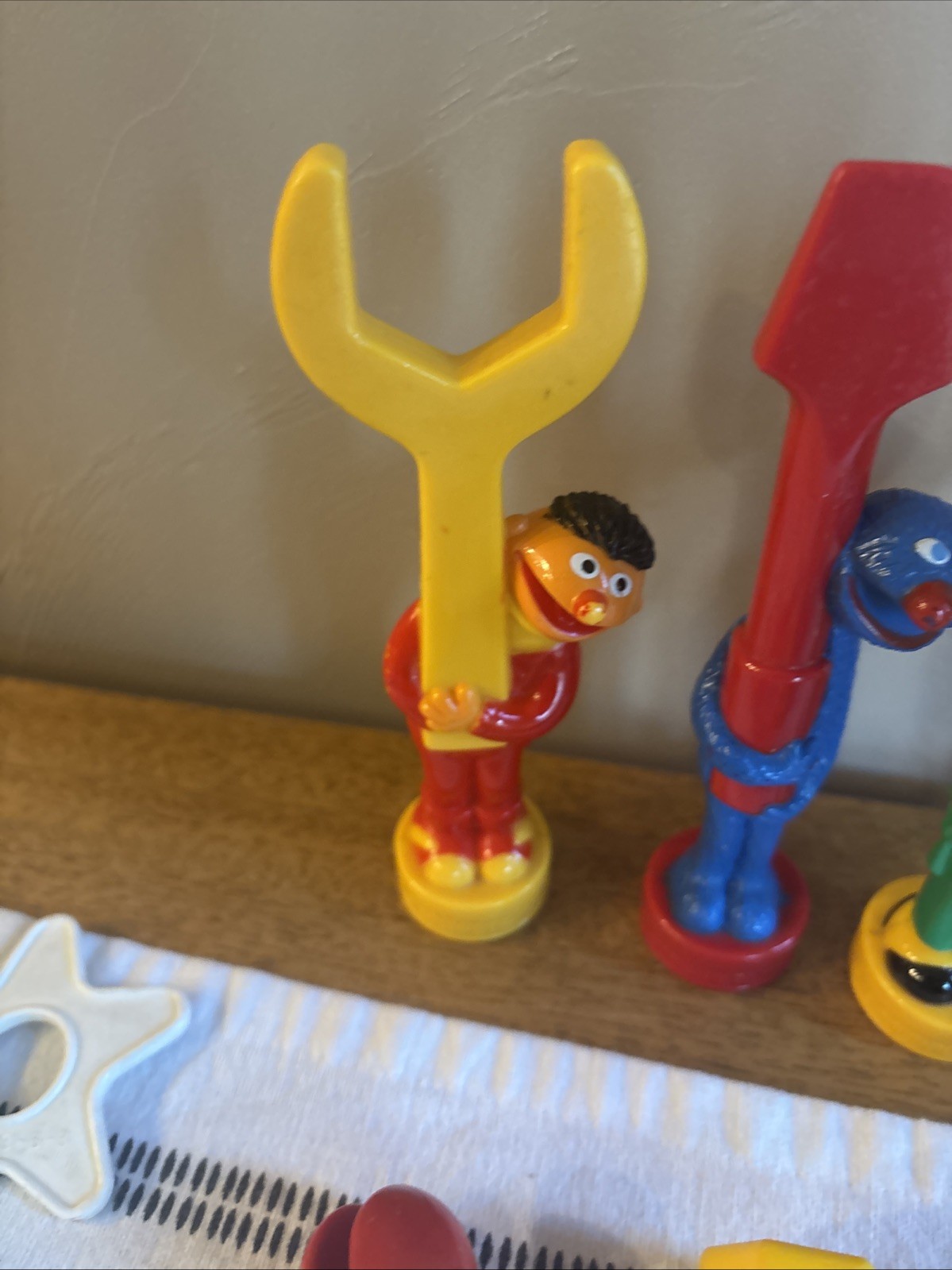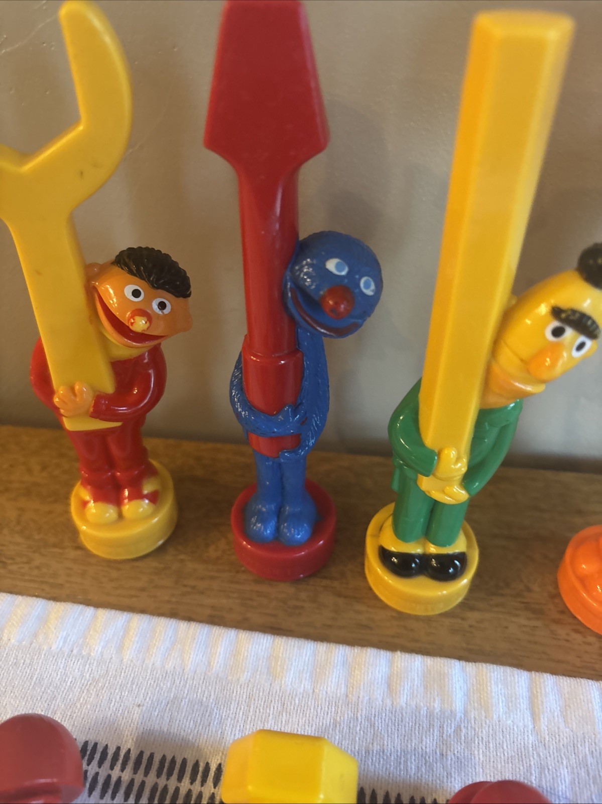 как выглядит 4 Sesame Street Workbench Tools Big Bird, Grover, Bert Ernie Screws Nails фото