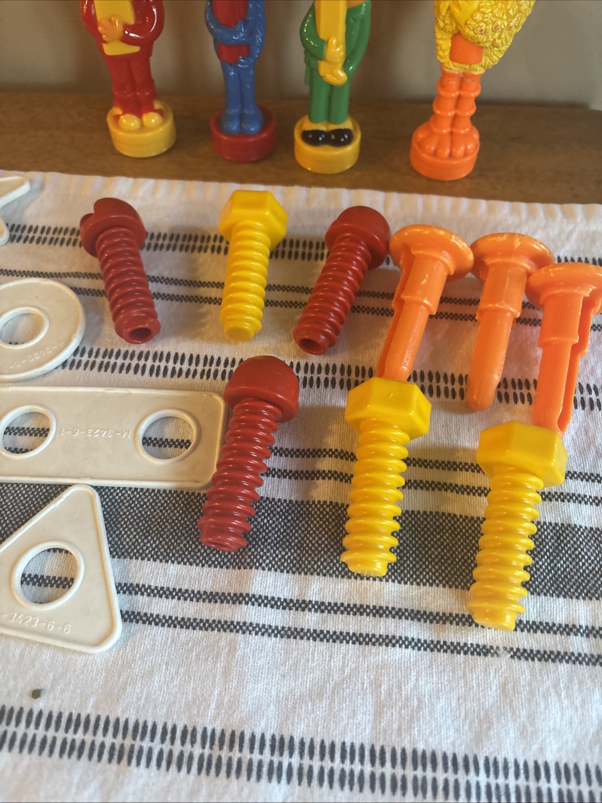 4 Sesame Street Workbench Tools Big Bird, Grover, Bert Ernie Screws Nails