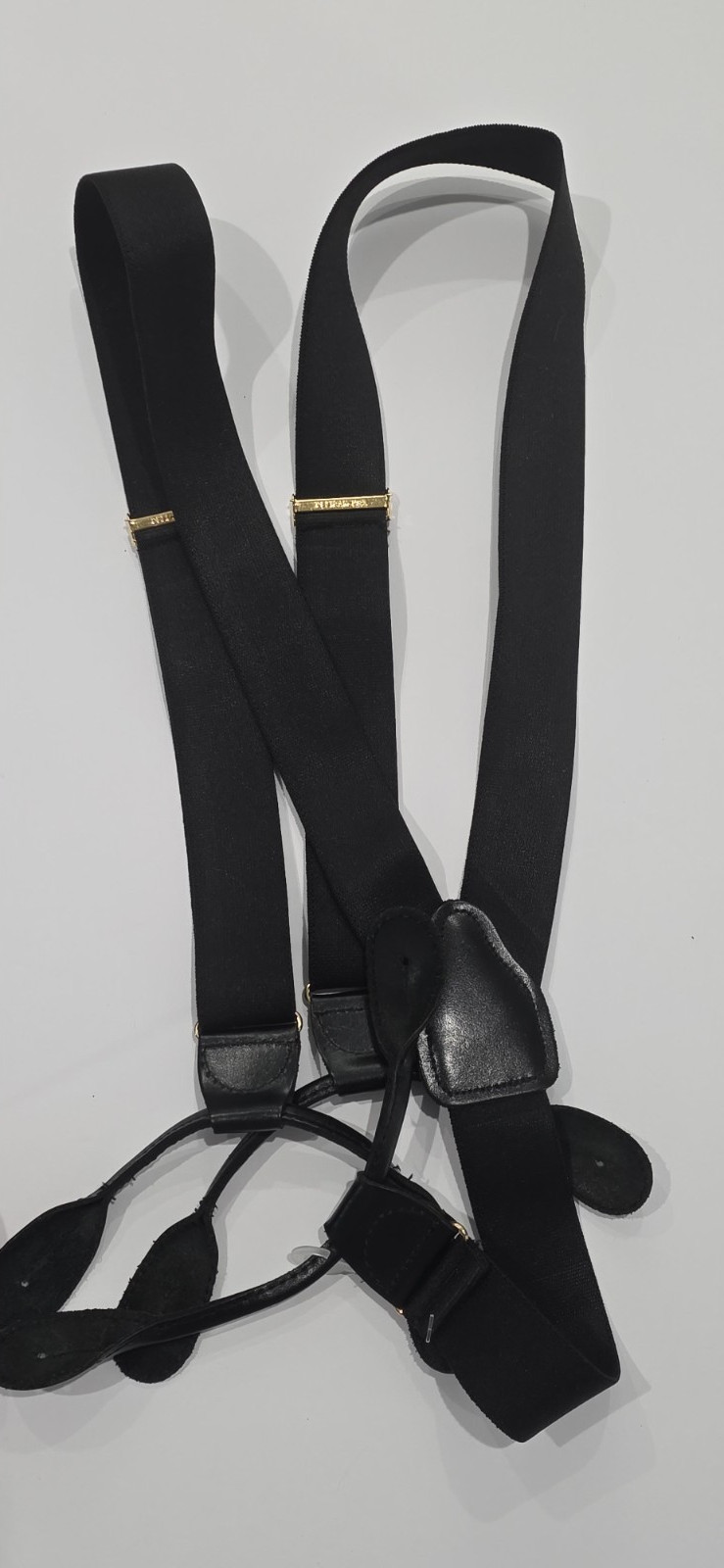Pelican Solid Stretch Black Brass USA Suspenders Braces Leather Button On