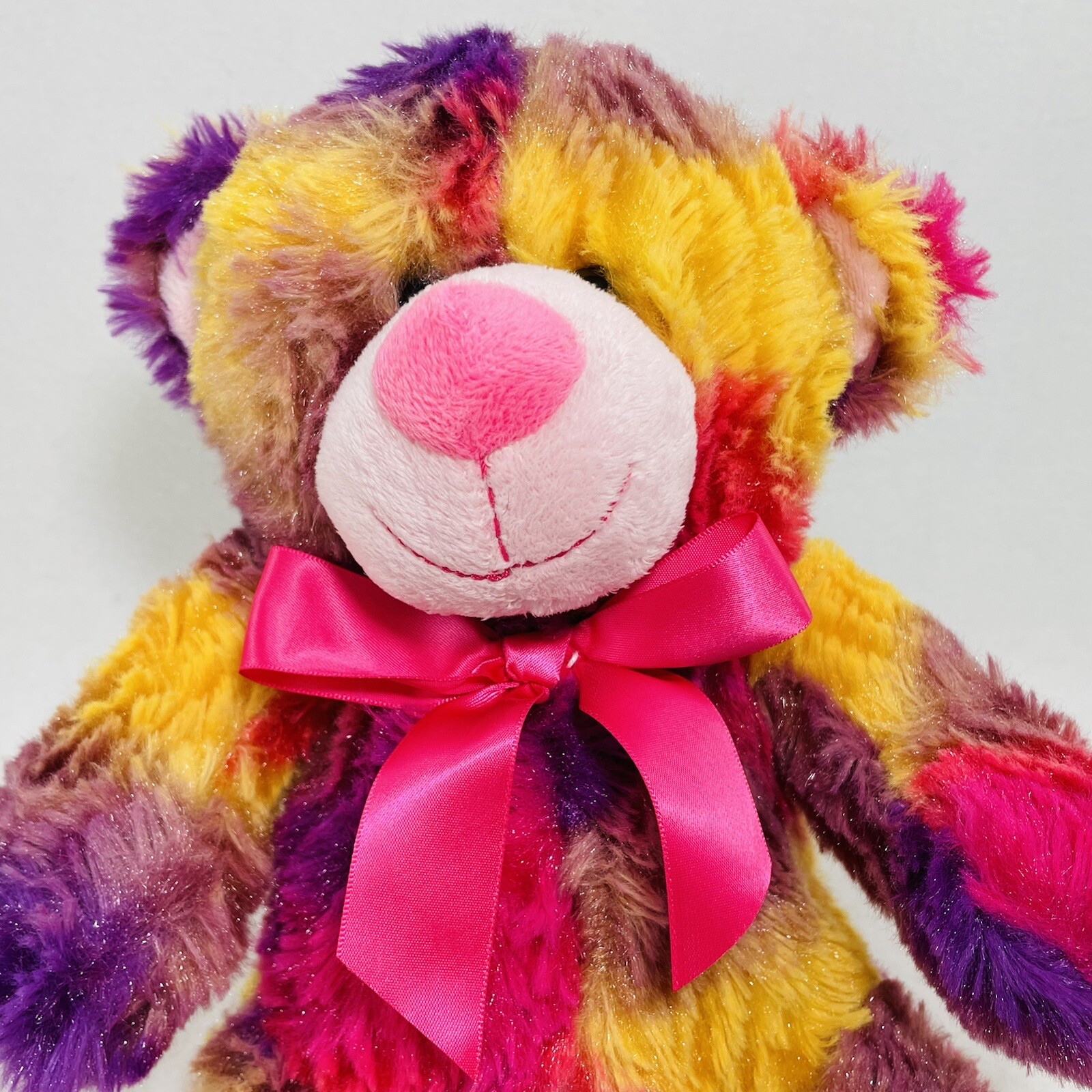 Kellytoy Colorful LGBT Rainbow Bear Plush 10 Sitter Pink Bow Heart Love Smile