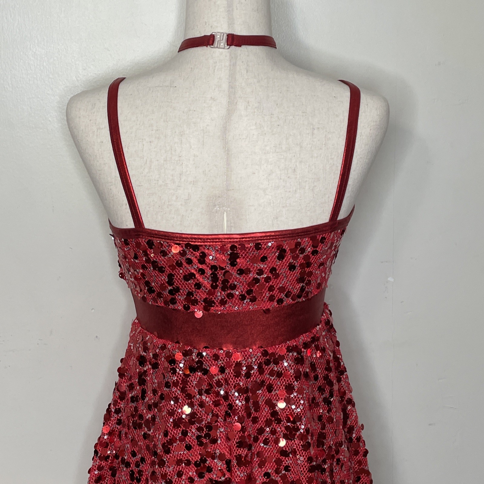 как выглядит A WISH COME TRUE size Medium Adult Jazz Ballet Lyrical Dance Costume RED Sequins фото
