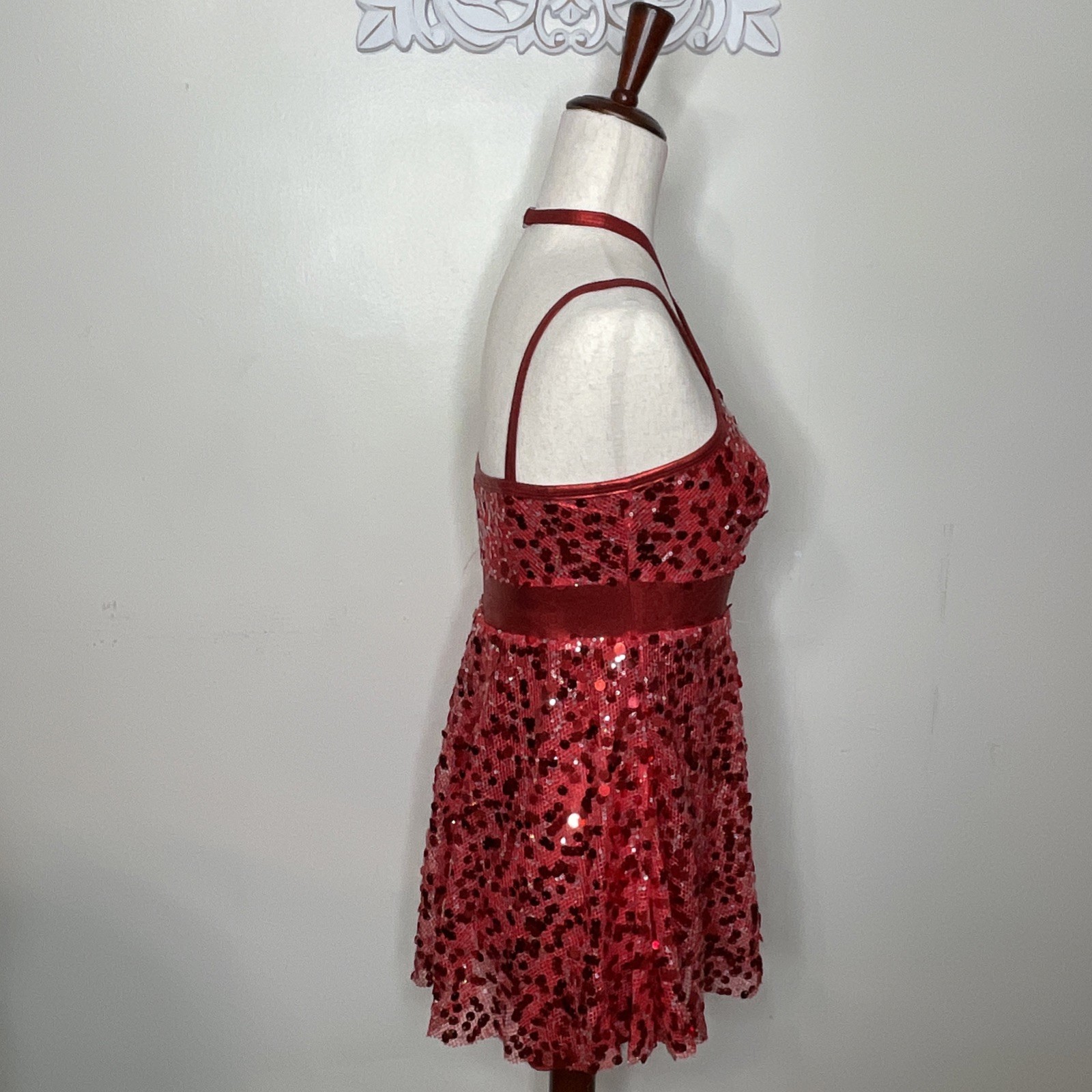 A WISH COME TRUE size Medium Adult Jazz Ballet Lyrical Dance Costume RED Sequins
