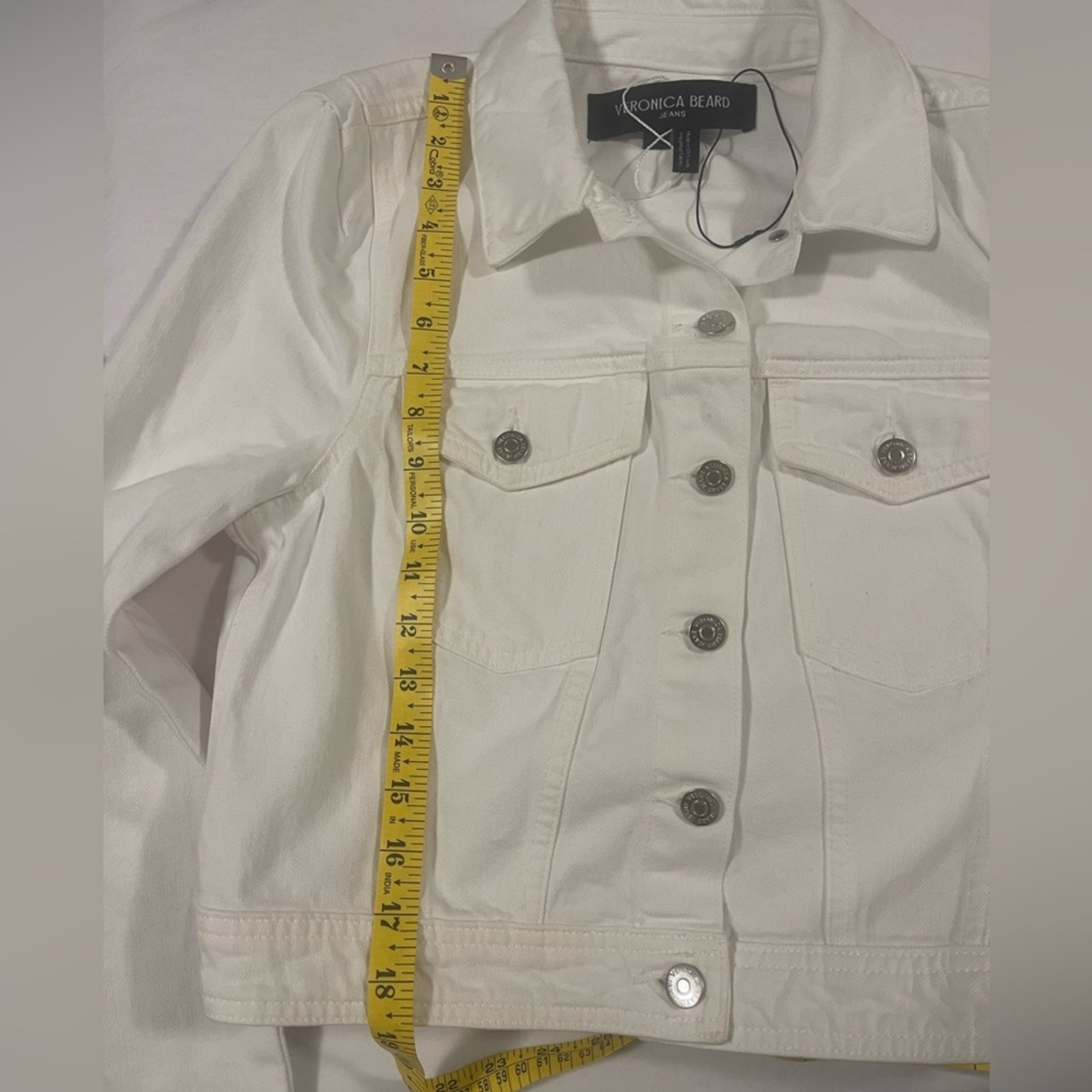 как выглядит NWOT: Veronica Beard Cropped White Denim Jacket in Size Small фото