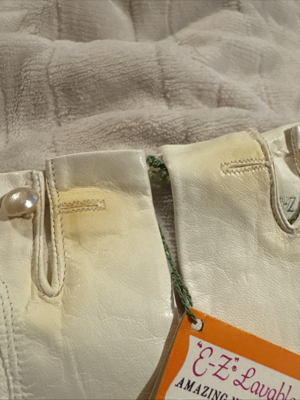 как выглядит Vintage French Ivory Leather Gloves Size 7 Lavable New Old Stock фото