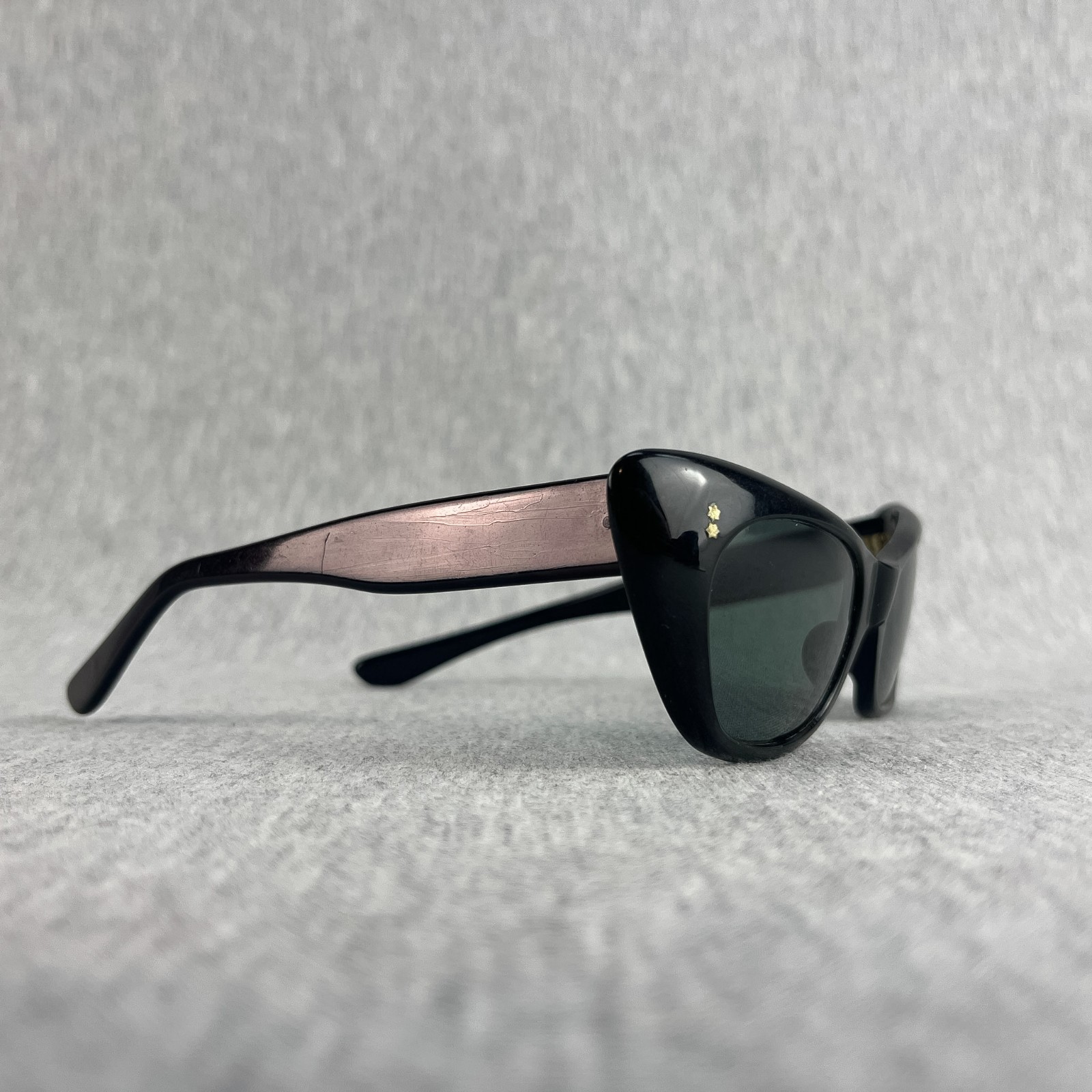 Vintage Cat Eye Sunglasses Frames Womens Black Plastic 60s Mod New Wave Bohemian