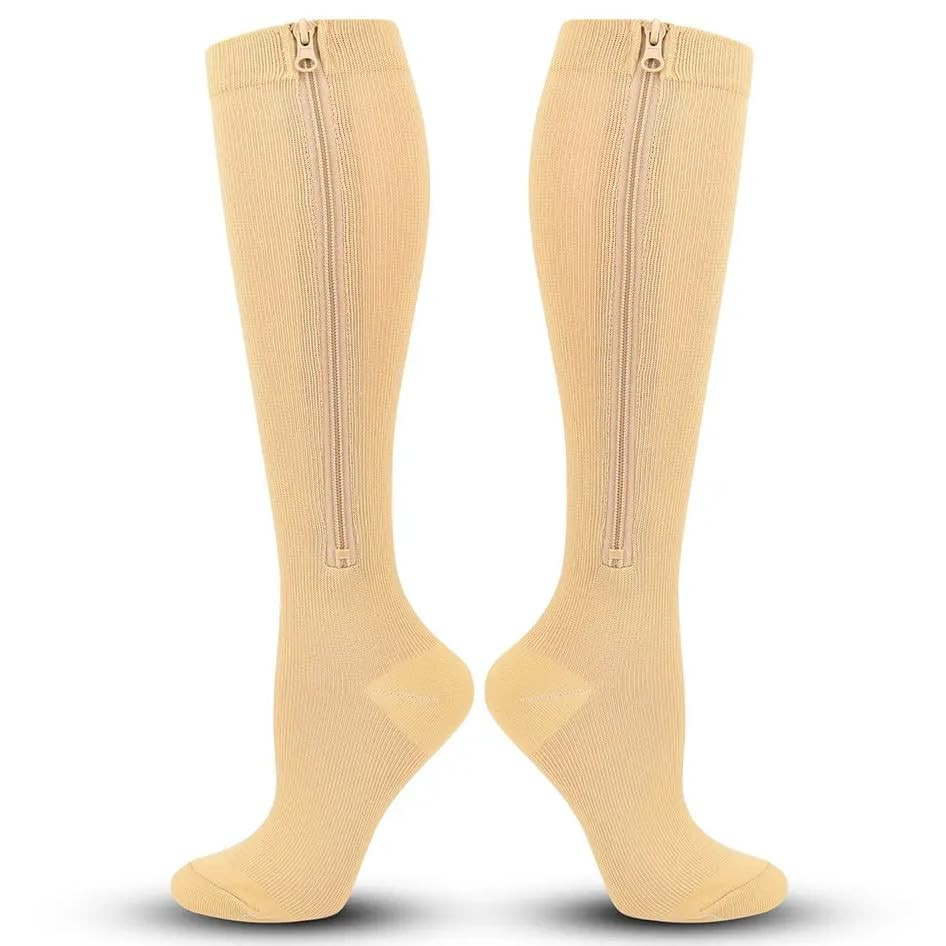 как выглядит Zipper Compression Socks for Men Women-Knee High 15-20mmHg Large, Skin Color фото