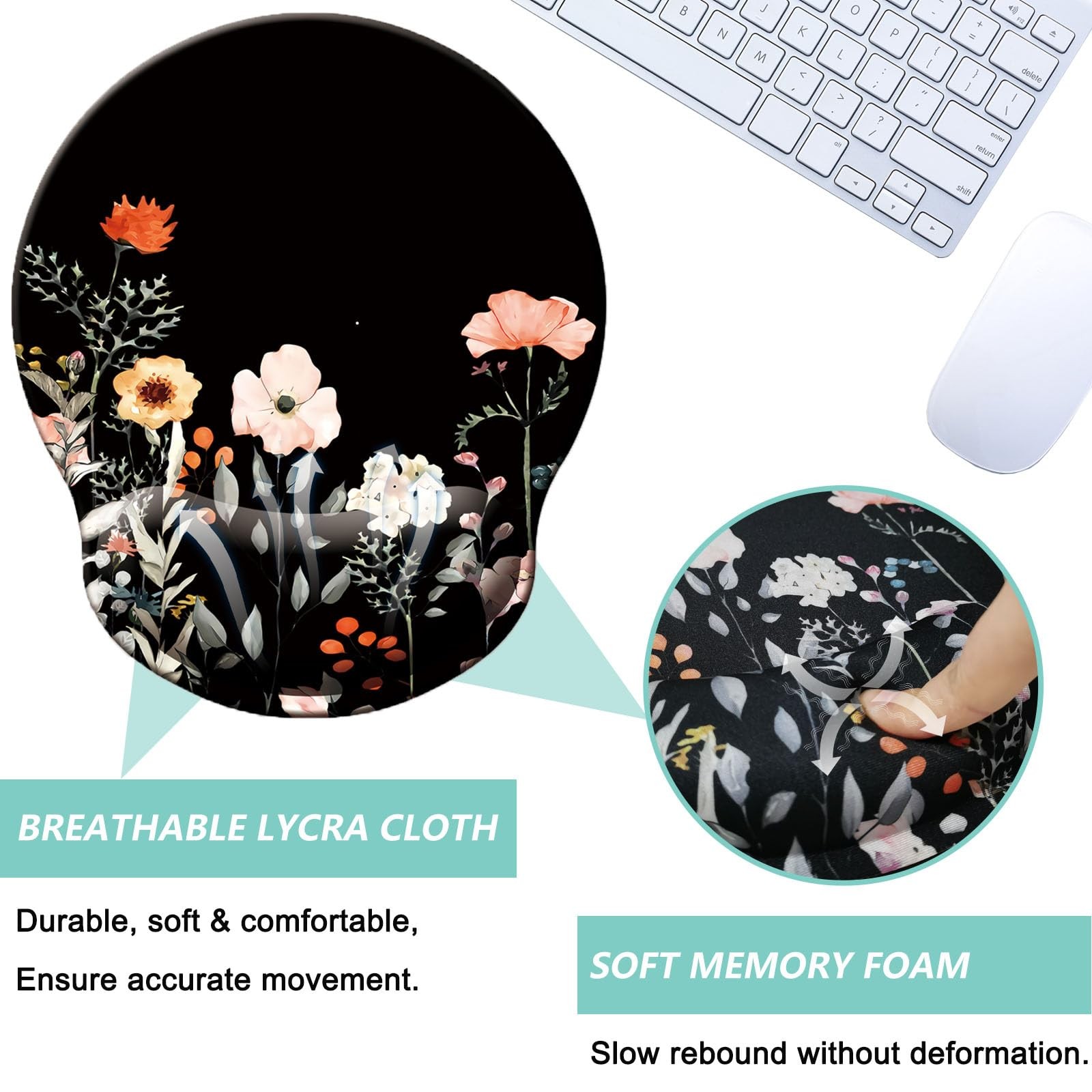 Mouse Pad with Wrist Support, Ergonomic 9.9L x 9.1W inches, U-flower black