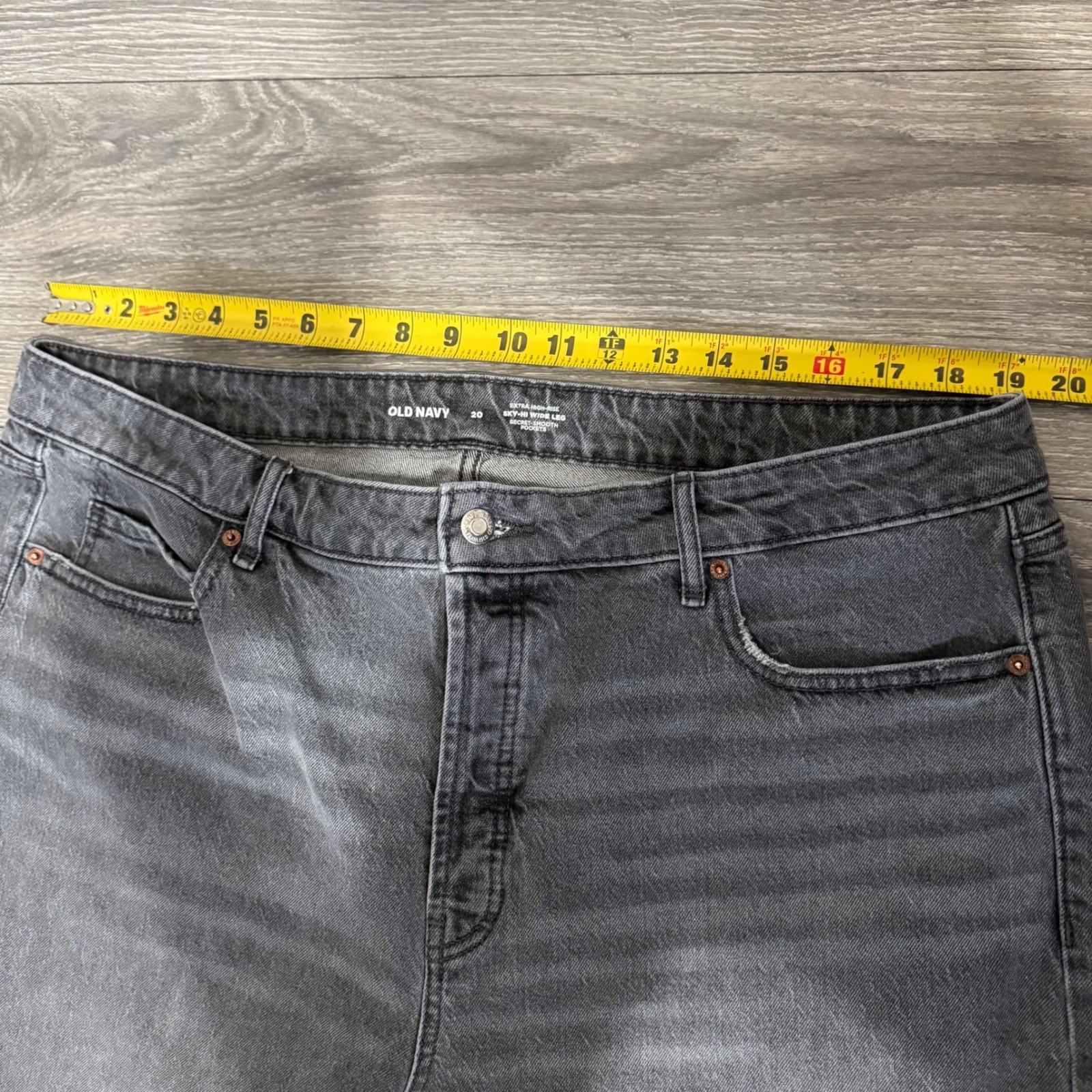 как выглядит Old Navy Sky-Hi Extra High Rise Wide Leg Jeans Gray Sz 20 Secret Smooth Pockets фото