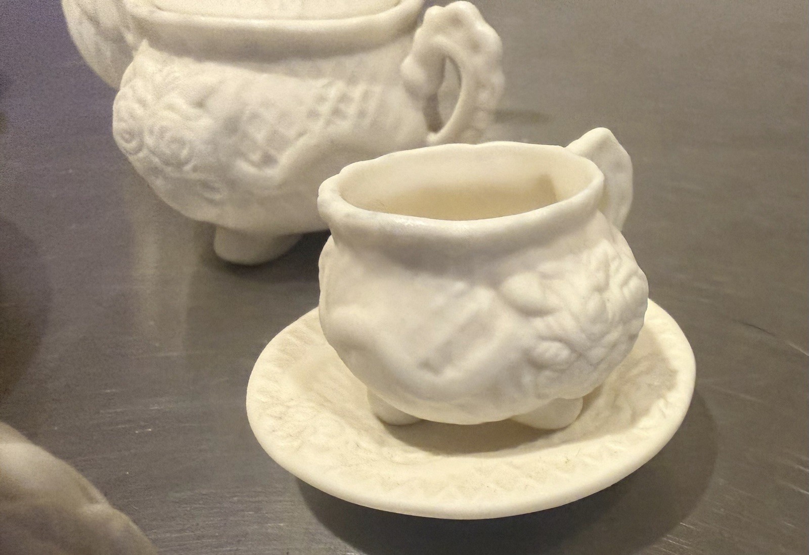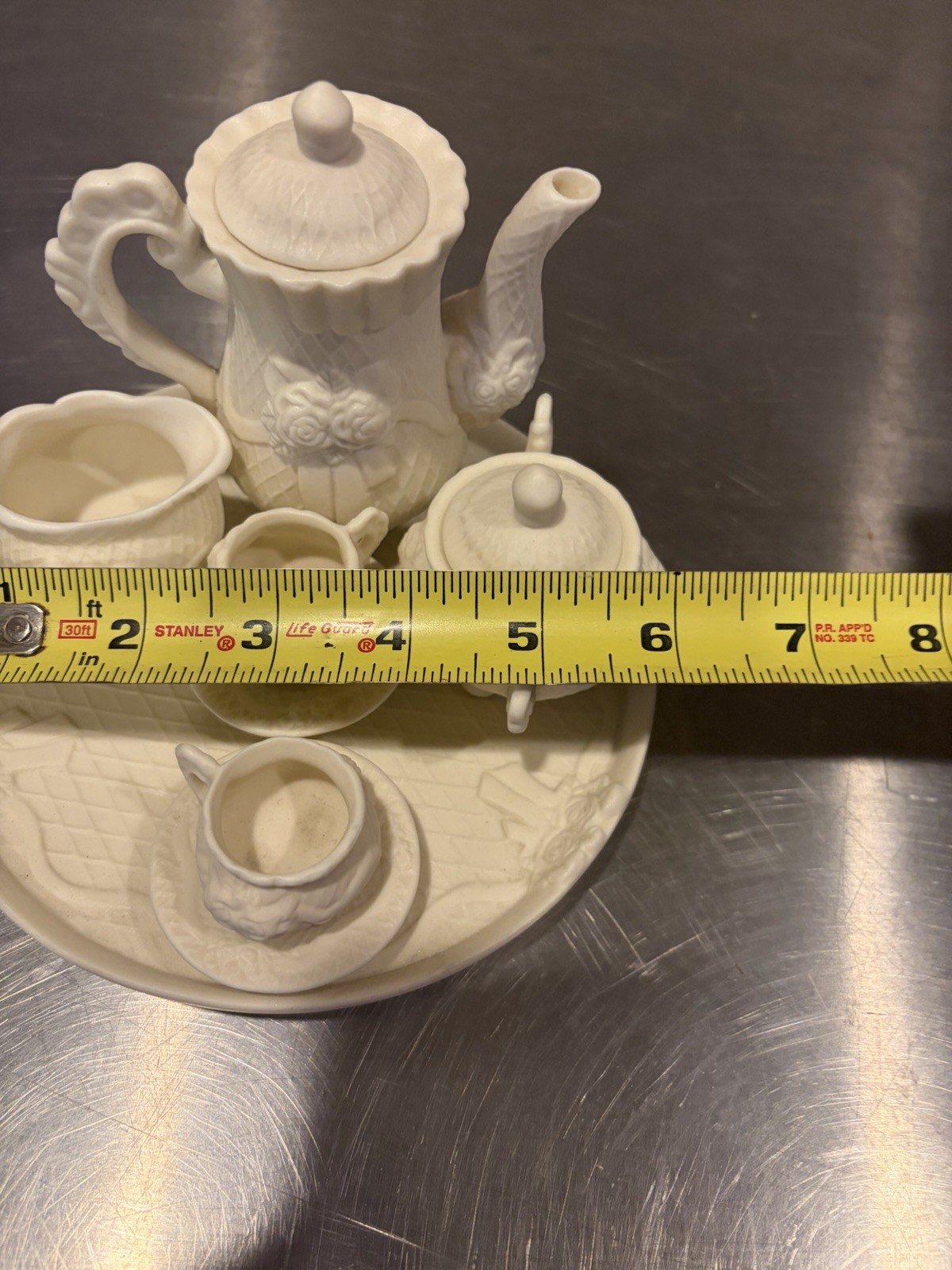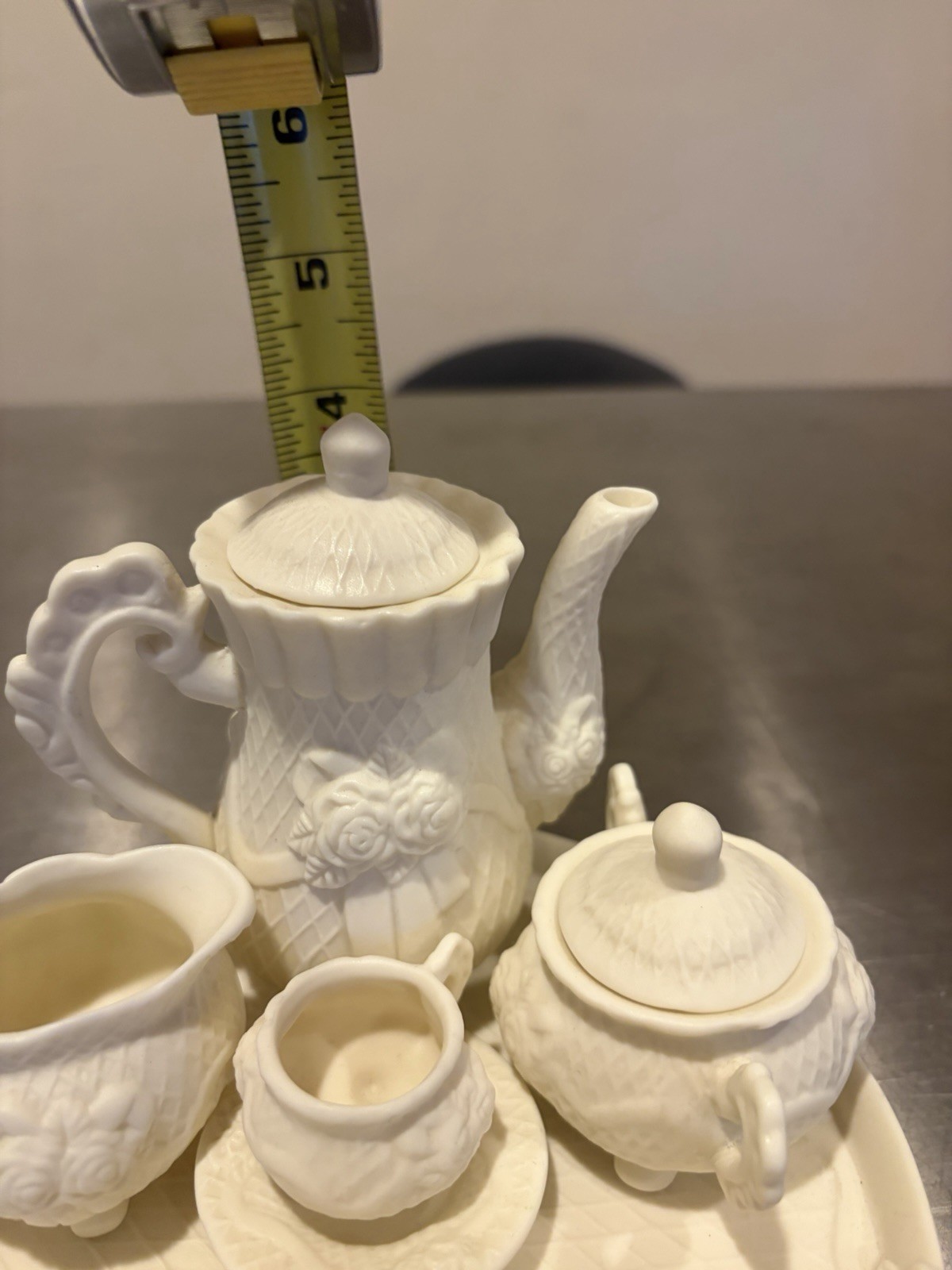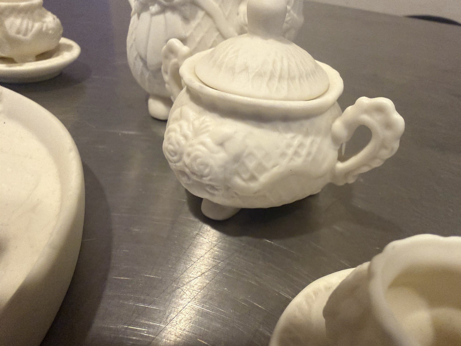как выглядит Vintage Tea Set 10 Piece White Porcelain Bisque Rose Pattern фото