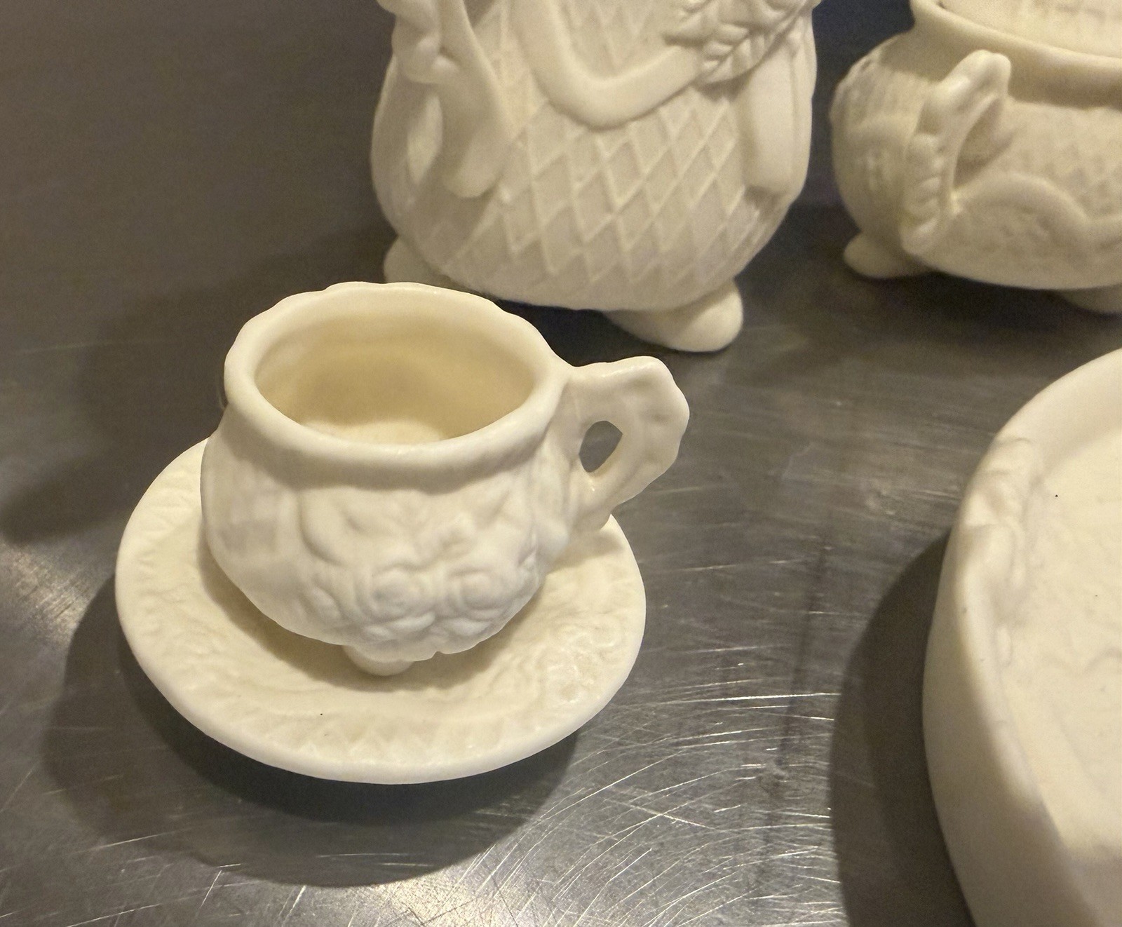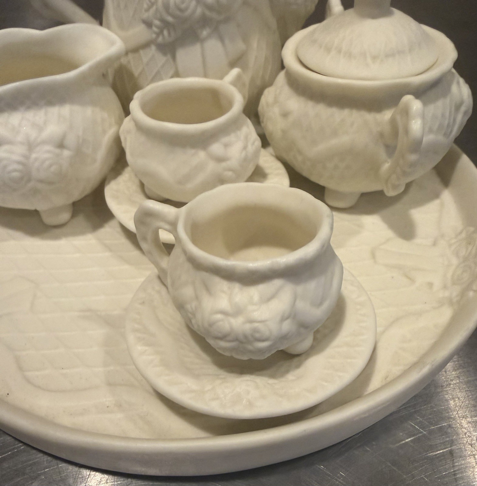Vintage Tea Set 10 Piece White Porcelain Bisque Rose Pattern