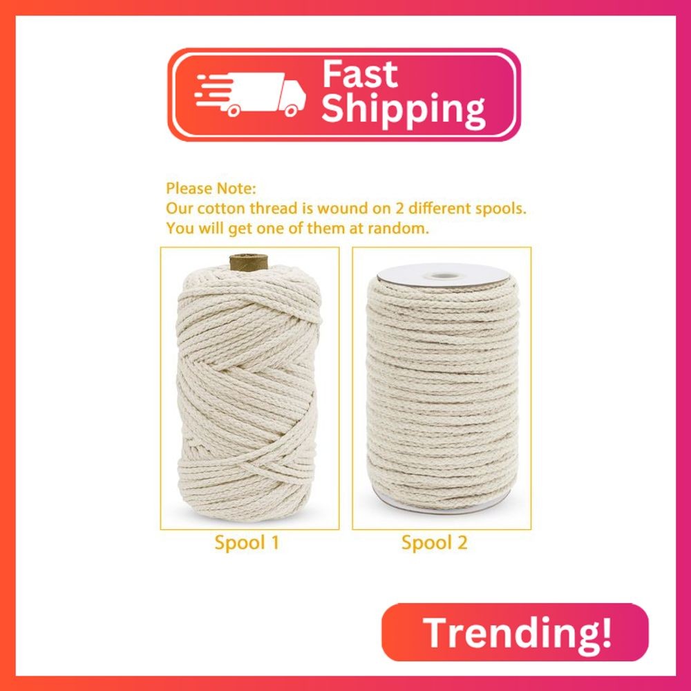 JeogYong Braided Macrame Cord 5mm x 295ft, Natural 8-Strand Braided Cotton Rope,