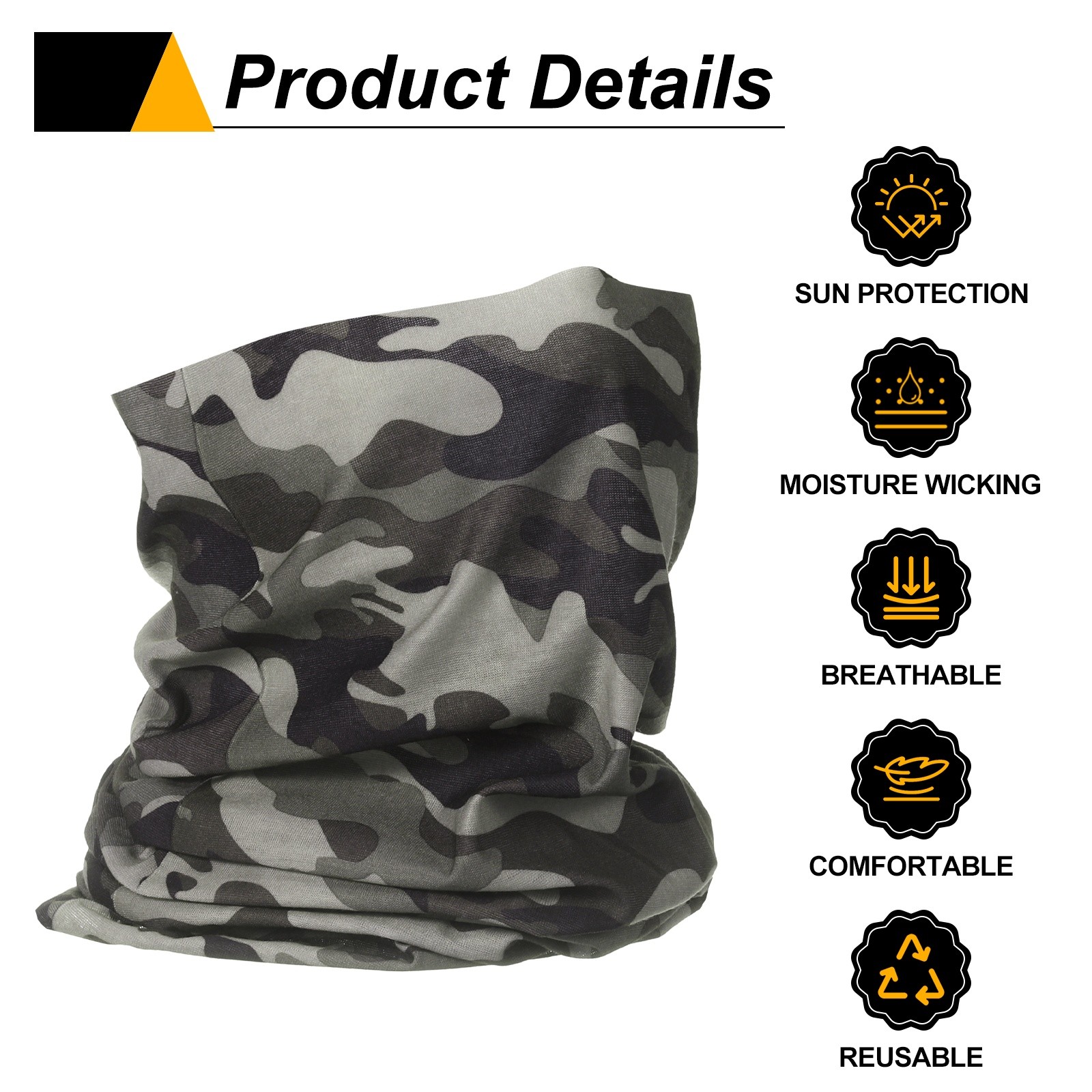 Summer Cooling Neck Gaiter Sun Protection Face Mask, Camo Gray