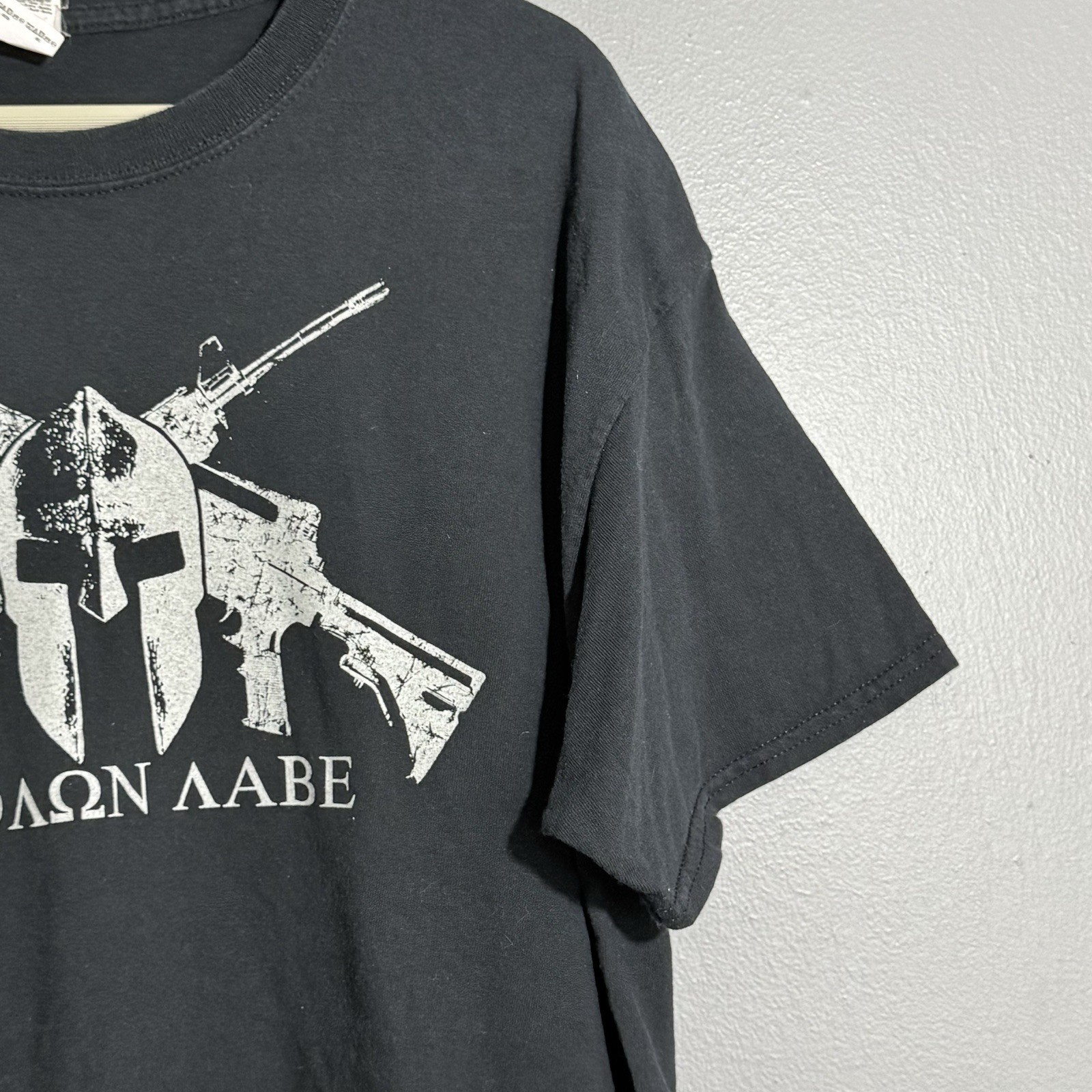Molon Labe Tshirt Men Size L Spartan Helmet Rifle Gun 2nd Amendment Supporter