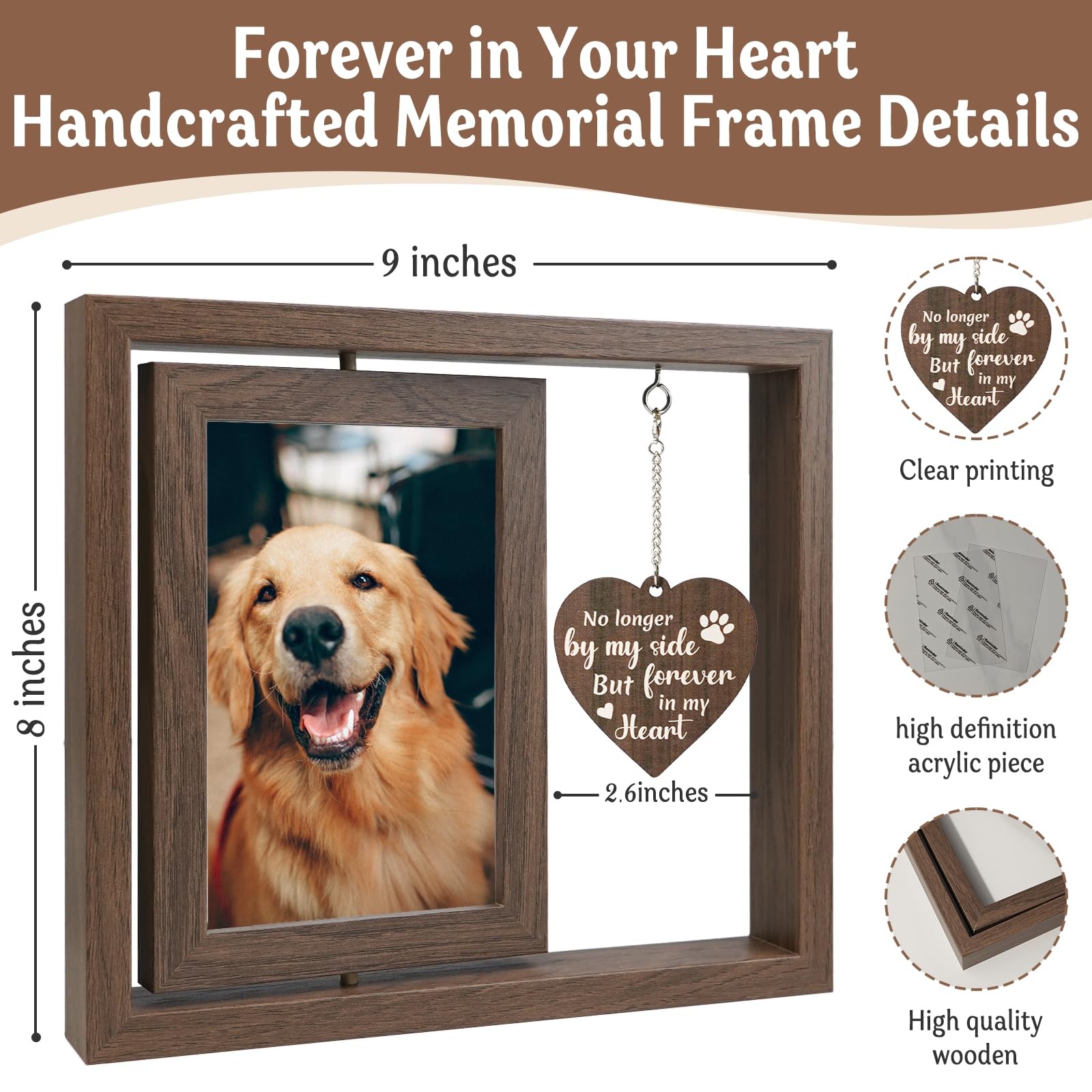 Pet Memorial Gifts for Loss of Dog, 4x6 Rotating Wooden Picture Frame, Loss o...