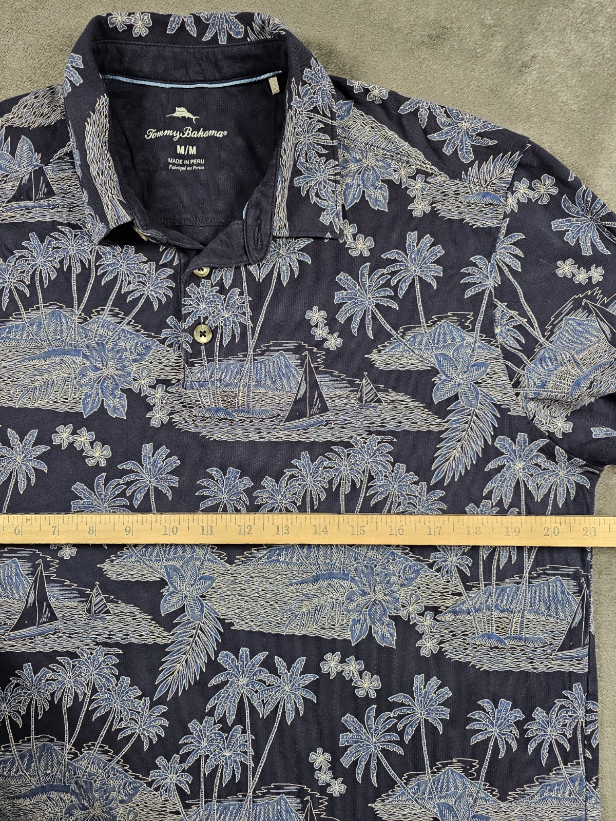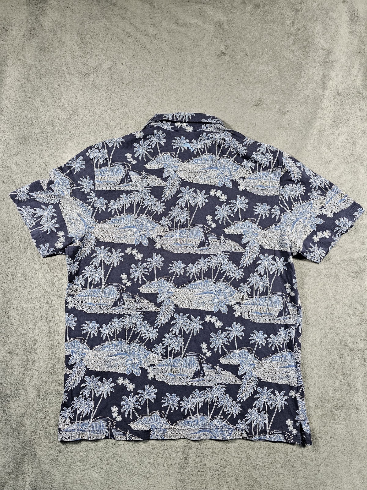Tommy Bahama Mens Polo Shirt Medium Blue Tropical Island Sailboat Print