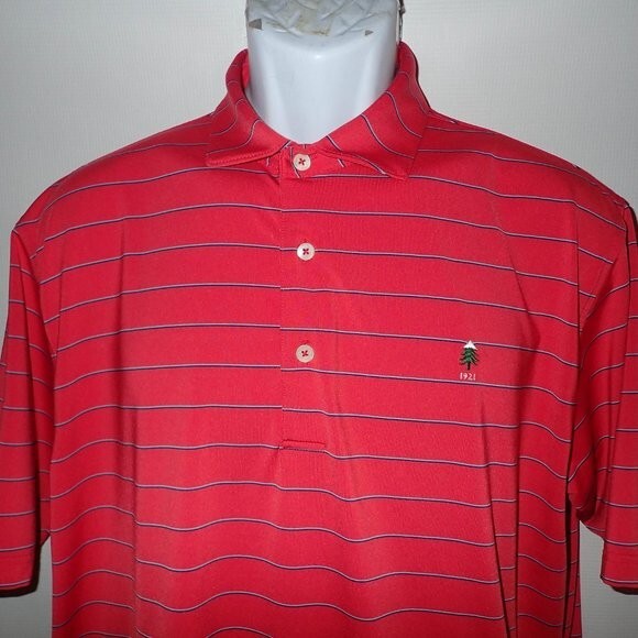 как выглядит Turtleson Tour Performance Striped Polo Golf Shirt Mens L Red Classic фото