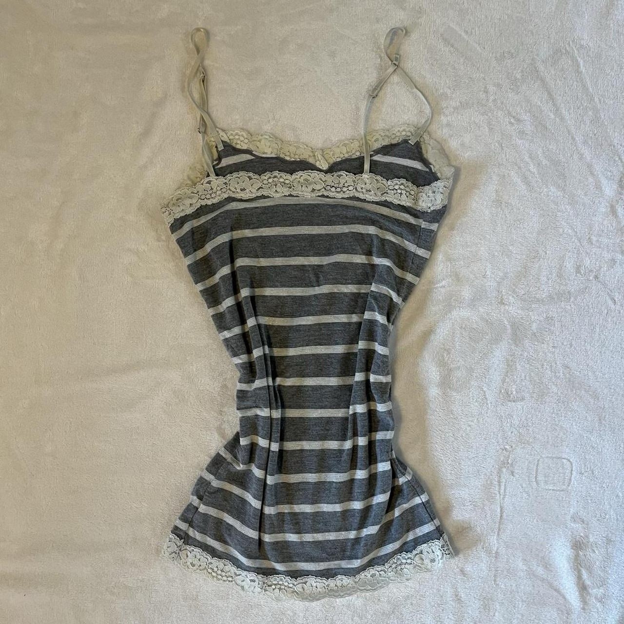 как выглядит Vintage Y2K Gray And White Striped Lace Coquette Whimsy Cami Top Women s S фото