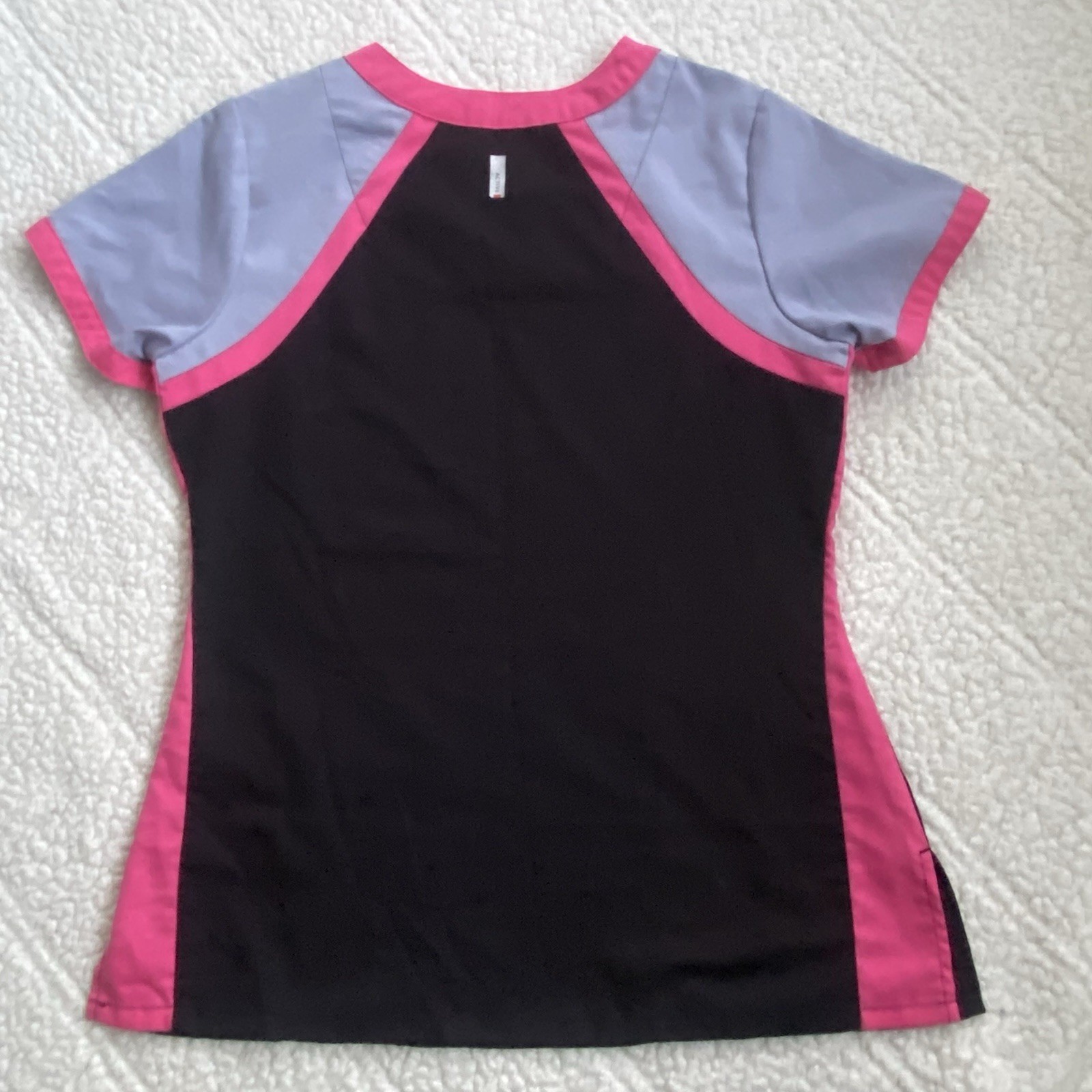 как выглядит Greys Anatomy Active by Barco Womens 3-Pocket Scrub Top Black Pink Gray Small фото