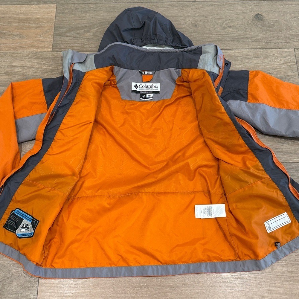 как выглядит COLUMBIA Orange Gray Bugaboo Full Zip Shell Jacket Winter Coat Size Youth 14/16 фото