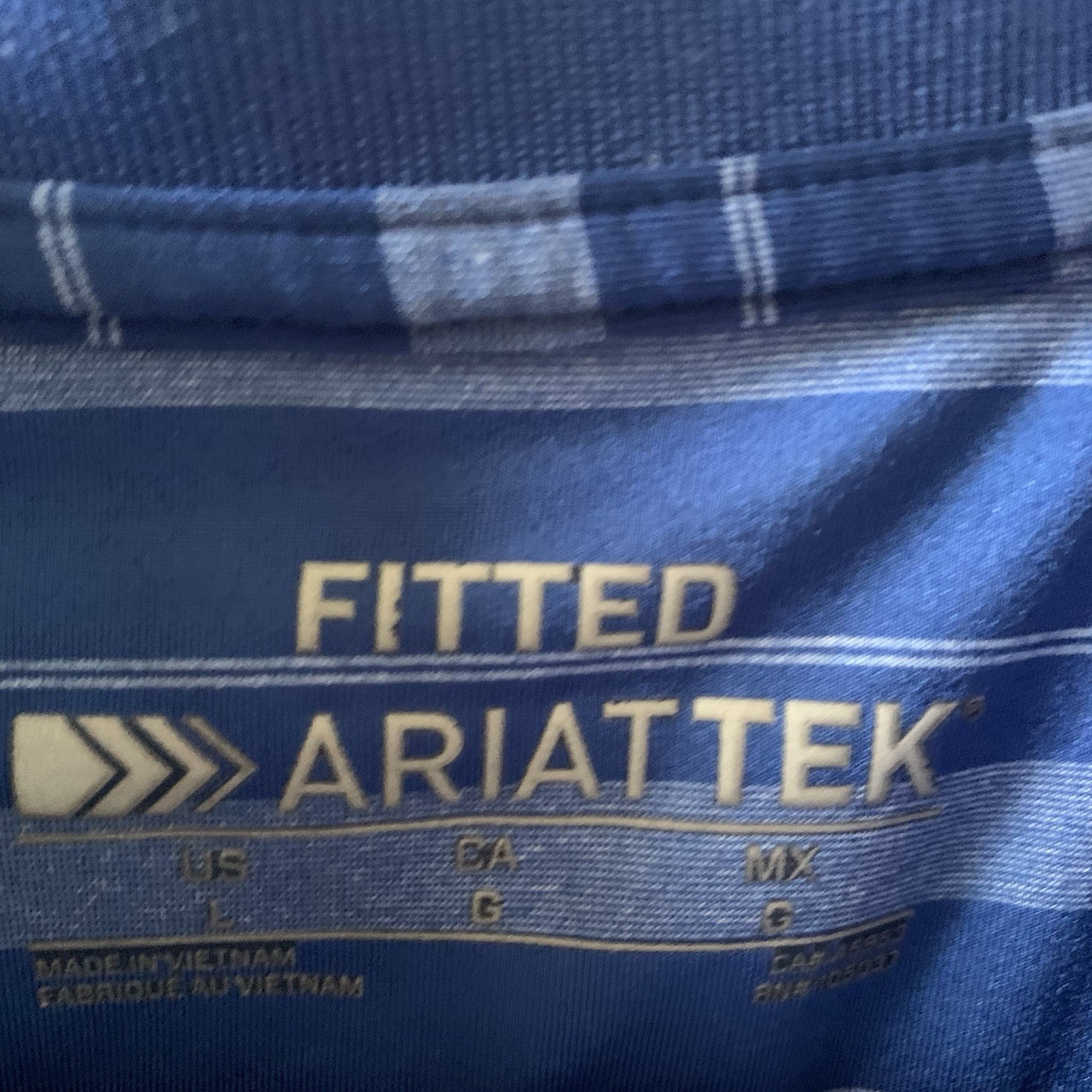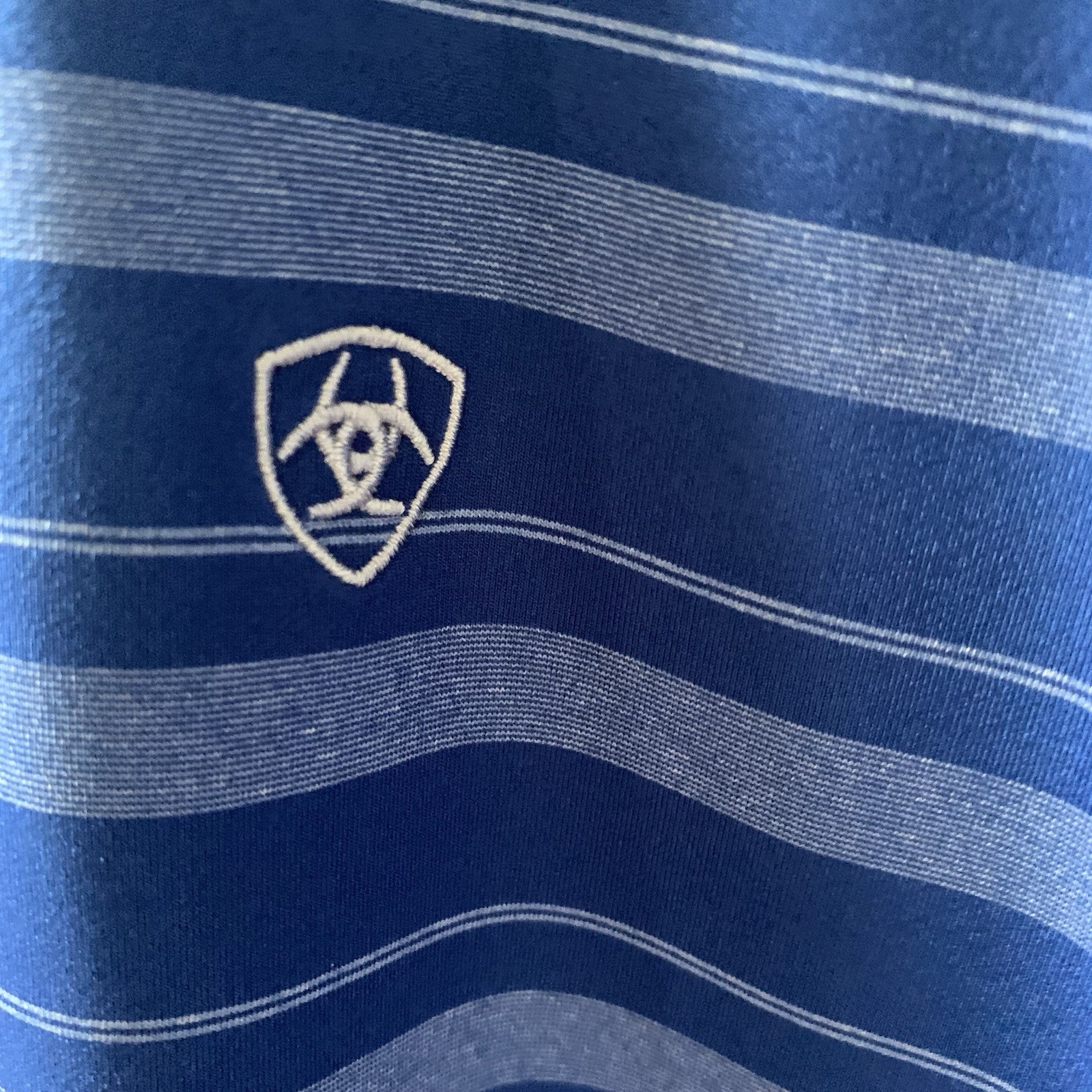 как выглядит Ariat Tek Fitted Heat Series Blue Striped Short Sleeve Active Polo Size Large фото