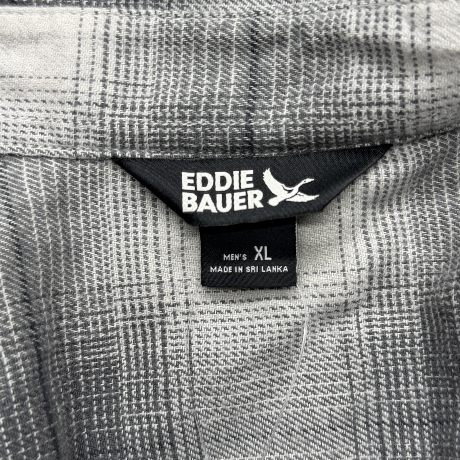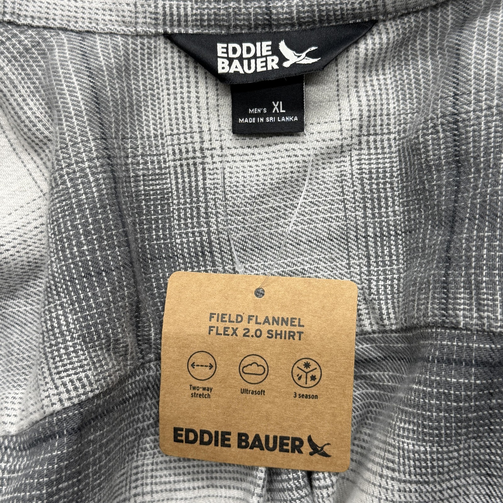 Eddie Bauer Shirt Mens XL Gray Plaid Field Flannel Flex 2.0 Stretch Button Front