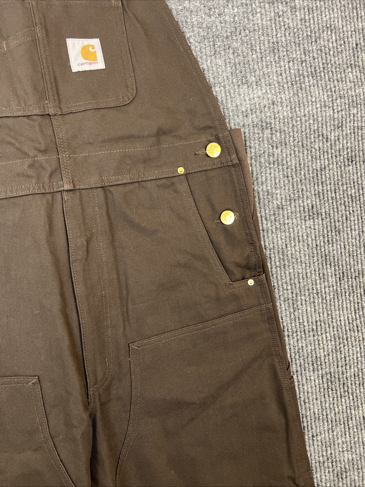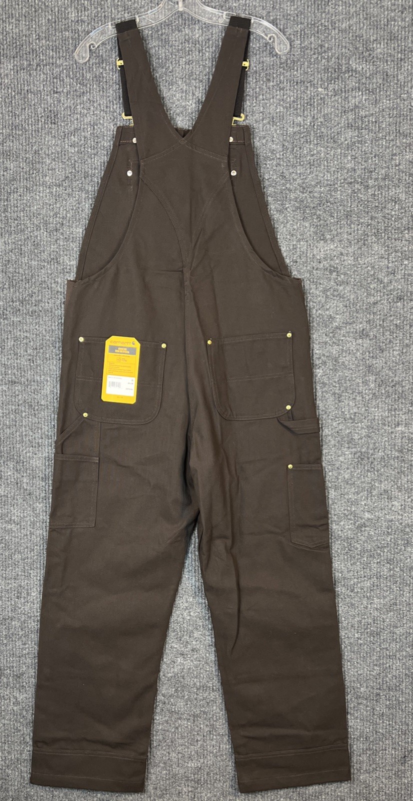 как выглядит Carhartt Mens Iconic R01 Duck Bib Overalls Dark Brown Size 34X30 Work Wear фото