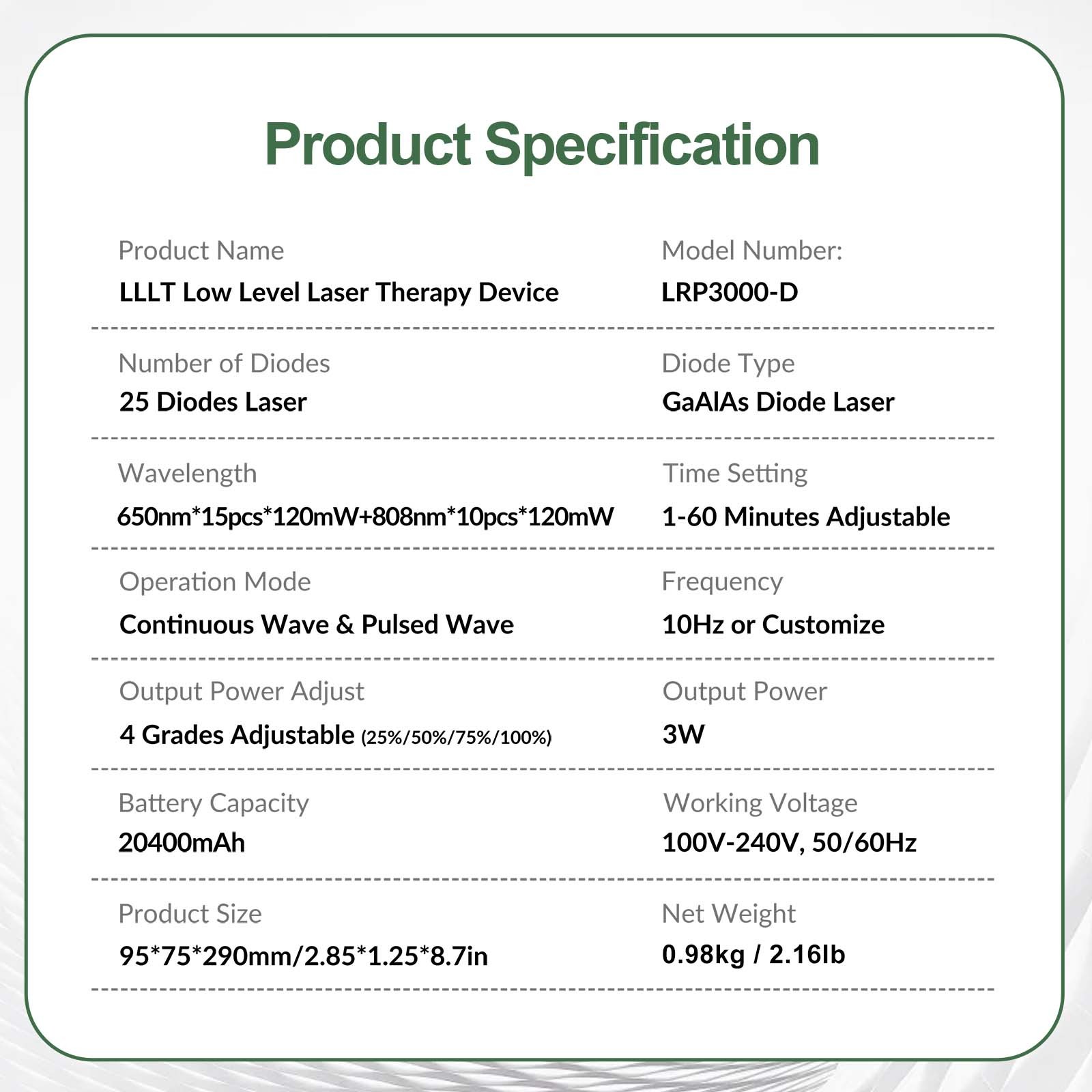 Number of Diodes: 25 Diodes Laser