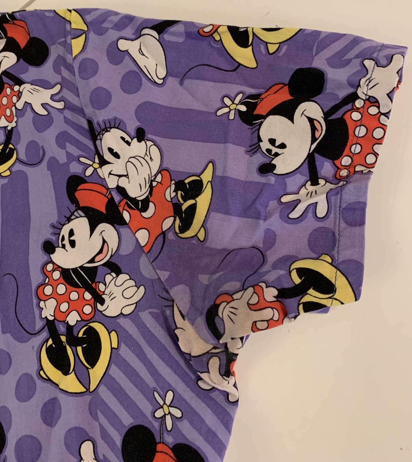 Minnie Mouse Scrub Top Disney Womens Size Medium Purple Pit to Pit 18 in